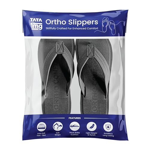 Tata 1MG Ortho Slippers - Women are made with soft eva and micro polymer insole material and skillfully designed . Tata 1mg ortho slippers with extra soft footbeds give a pain-free experience while walking. Tata 1mg ortho slippers are preventive footwear and help control over-pronation providing relief to aching feet. Its broad front footbed is ideal for wide feet.