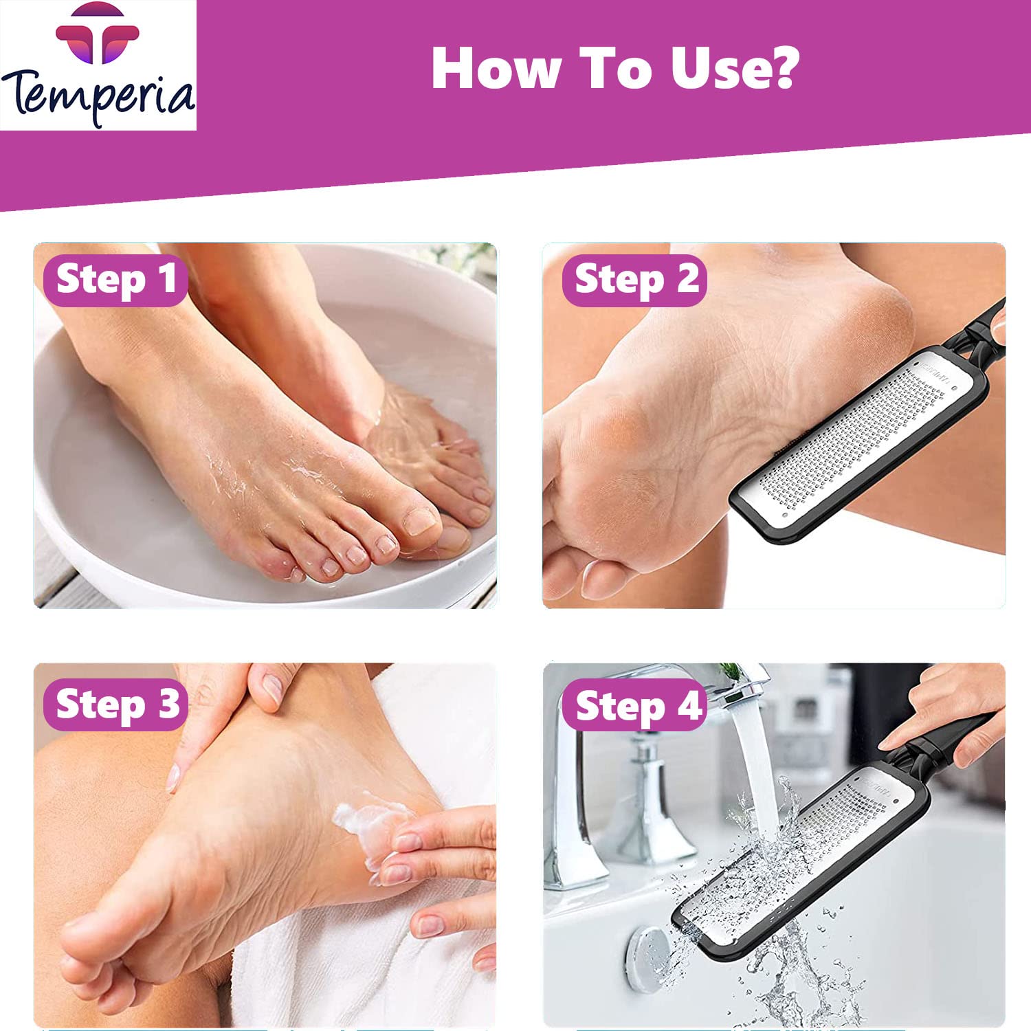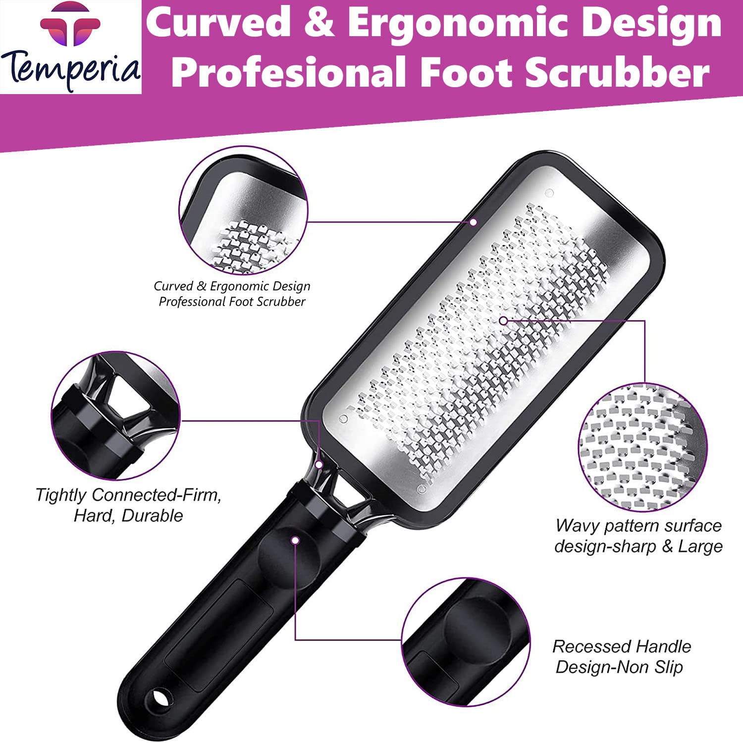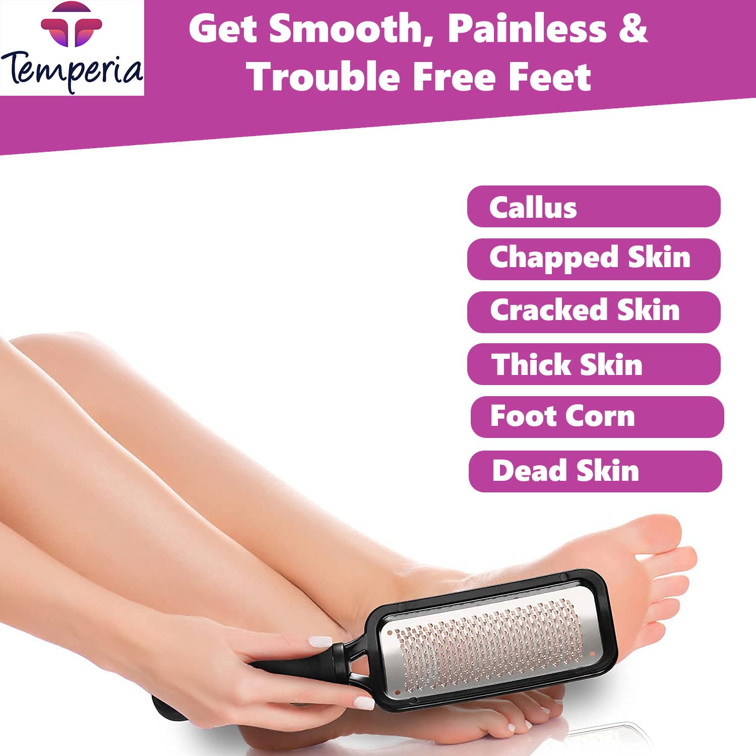 Temperia Leg Heel & Foot Scrubber for Dead Skin - Very Sharp & Big (11 * 3 inch) - Pedicure & Feet Scrub Tools Foot Scraper Cleaner & Filer Callus Remover For Cracked Heels (Metal)