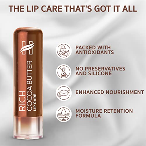 Indulge your lips with Himalaya herbals intensely moisturizing rich cocoa butter lip care. Our luxurious lip balm moisturizes your lips to keep them soft and supple. The moisture retention formula with skin soothers makes your lips naturally glossy while the antioxidants and natural actives care for your lips by protecting them from environmental damage. Enriched with 100 percentage natural color vitamin E and antioxidants rich cocoa butter lip care is free from preservatives petroleum jelly mineral oil and silicone. Key ingredients: Cocoa butter provides intense hydration effectively moisturizes chapped lips and makes lips soft supple and healthy. Castor oil has soothing emollient properties that make lips soft and supple. Directions for use: Apply rich cocoa butter lip care evenly and liberally on your lips as often as needed.