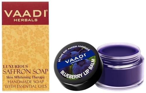 VAADI HERBALS Lip Balm, Blueberry, 10g & Luxurious Saffron Soap, Skin Whitening Therapy, 75g