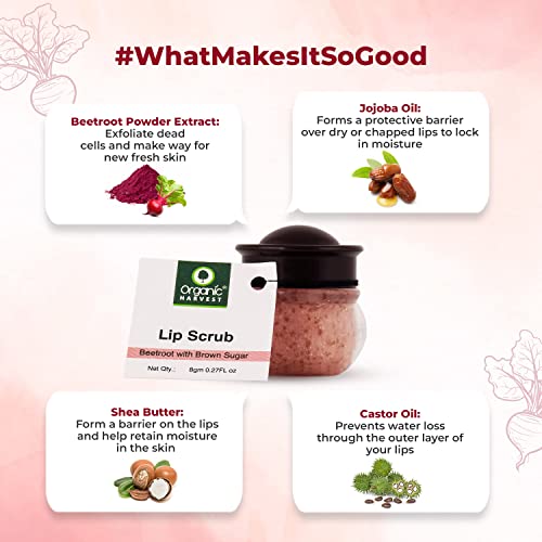 Organic Harvest Lip Scrub with Beetroot Extracts, For Lightening & Brightening Dull Lips, Infused with Natural Products to Repair Dark, and Damaged Lips, Best for Men & Women, 100% Organic - 8gms