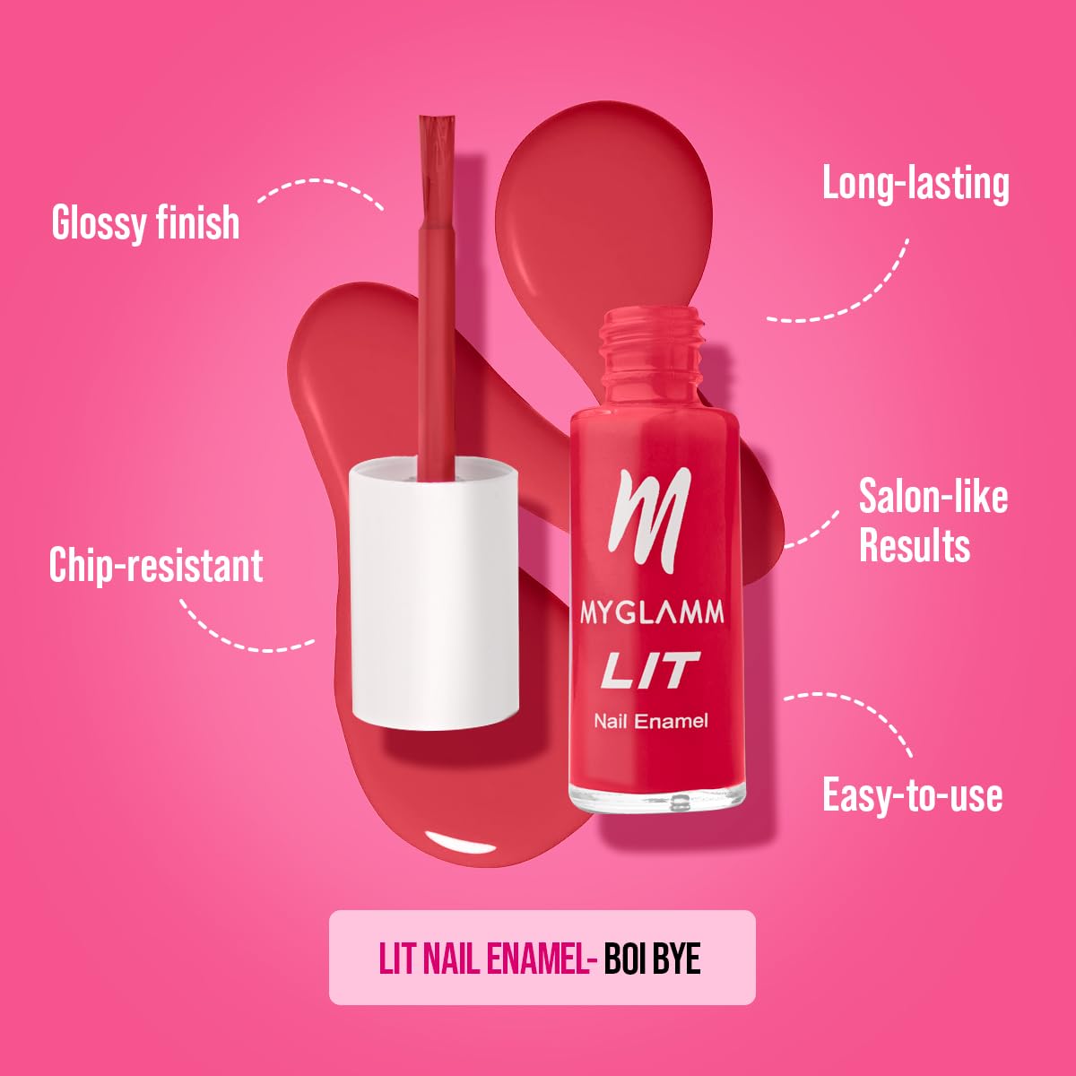 Here's your new go-to makeup kit to get your glamm on. Minimal everyday or a glamm night makeup look - this kit has got your back! Super Kohl Long Stay Kajal for eyes that âscream' drama LIT Radiant Matte Compact Powder to perfect your base LIT Matte Rush Mini Lipstick for statement lips LIT Glossy Eyeliner to wing it like you mean it LIT Nail Enamel for salon-like manis at home