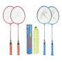 HomeHealth & PersonalSports & fitnessSports EquipmentsHipkoo Sports Aluminum Badminton Rackets Set of 4| Wide Body Shuttle Bat with Cover 10 Shuttles| Ideal for Beginner and Recreational| Lightweight and Sturdy| Blue and Red