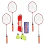 Hipkoo Sports Standard Aluminum Badminton Rackets Set of 4| Wide Body Shuttle Bat with Cover 3 Shuttles and Net| Ideal for Beginner| Lightweight and Sturdy| Red