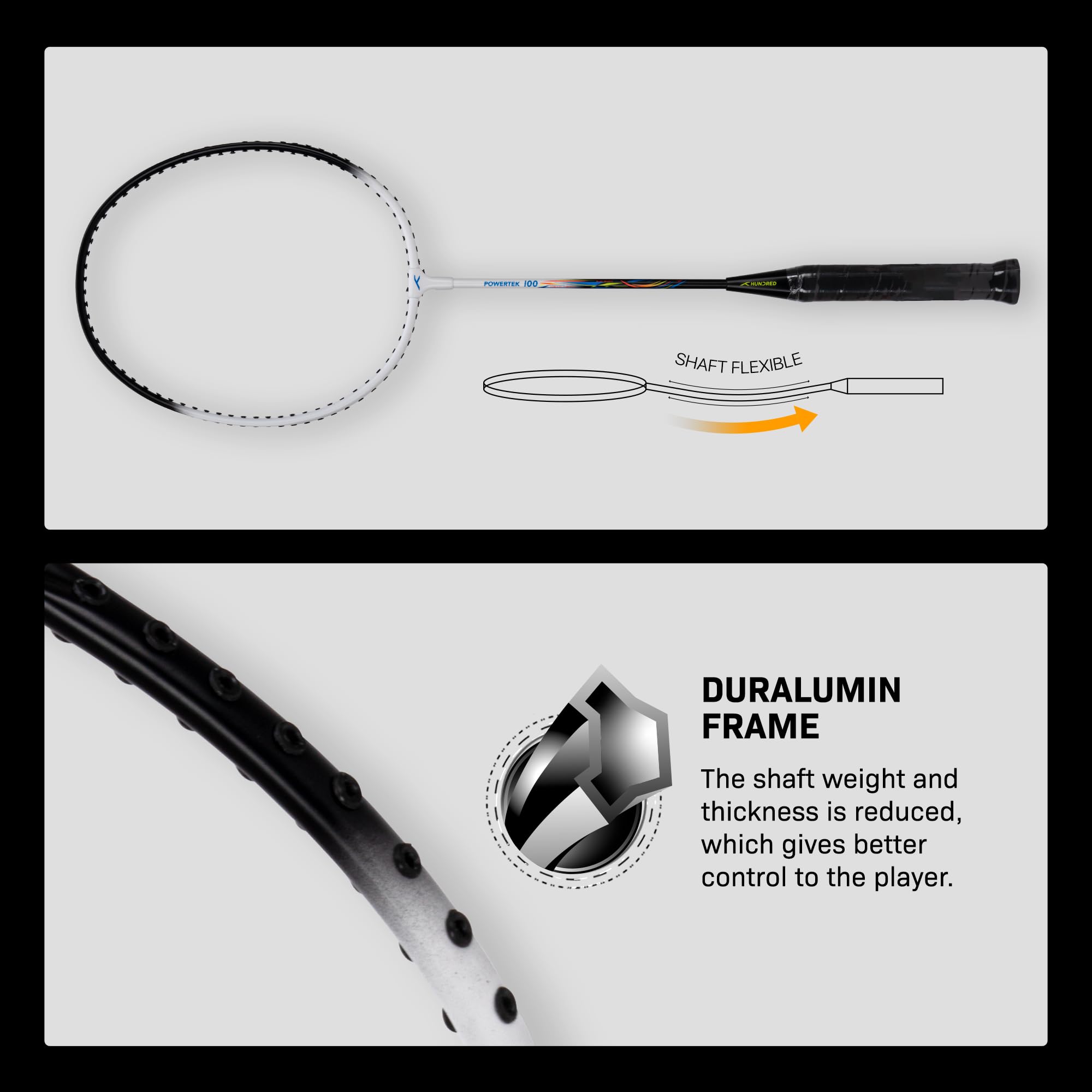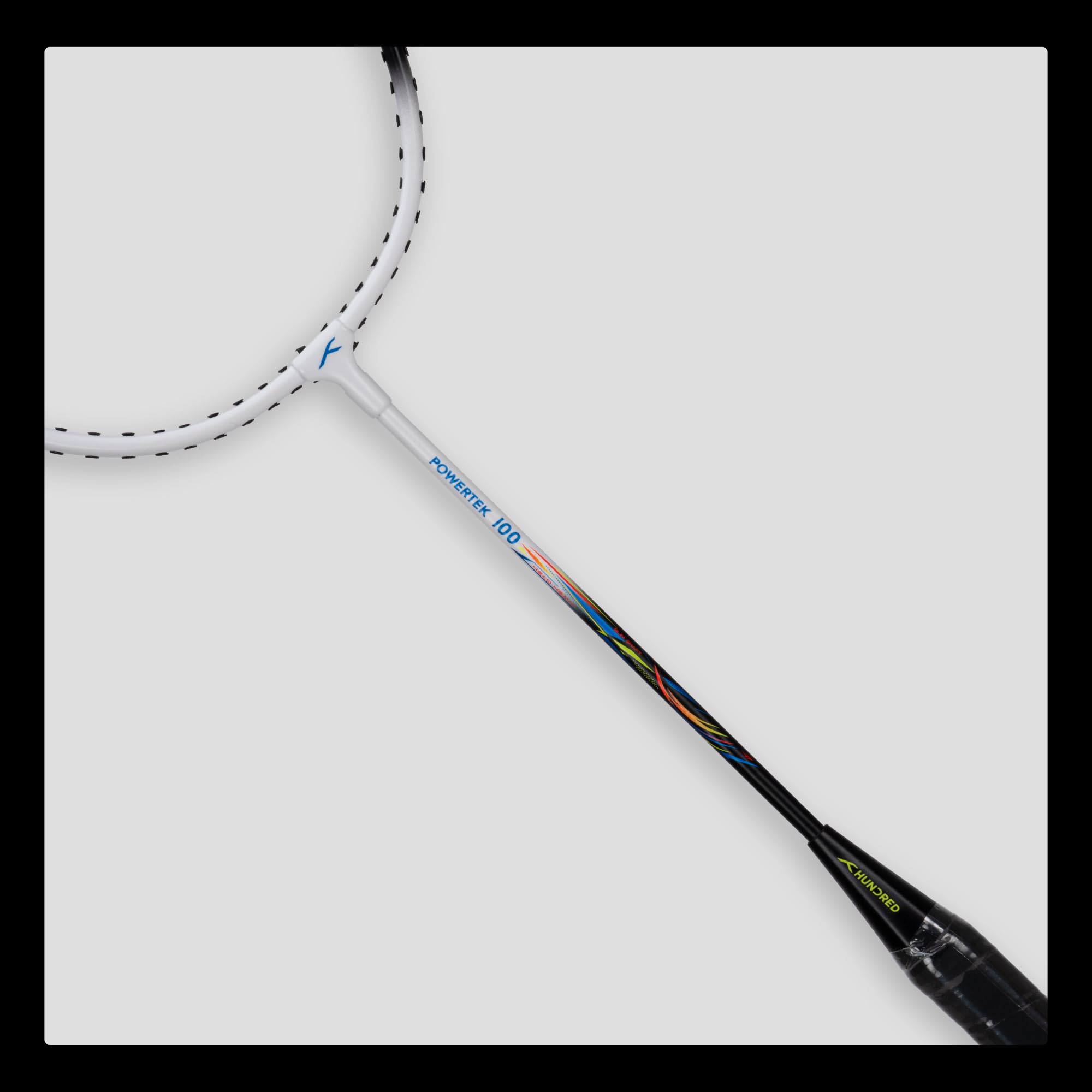 Lightweight Powertek 100 Badminton Racket for a great balance of power and control this racket is ideal for developing your skills. It comes pre-strung and ready to play so you can hit the court right away.