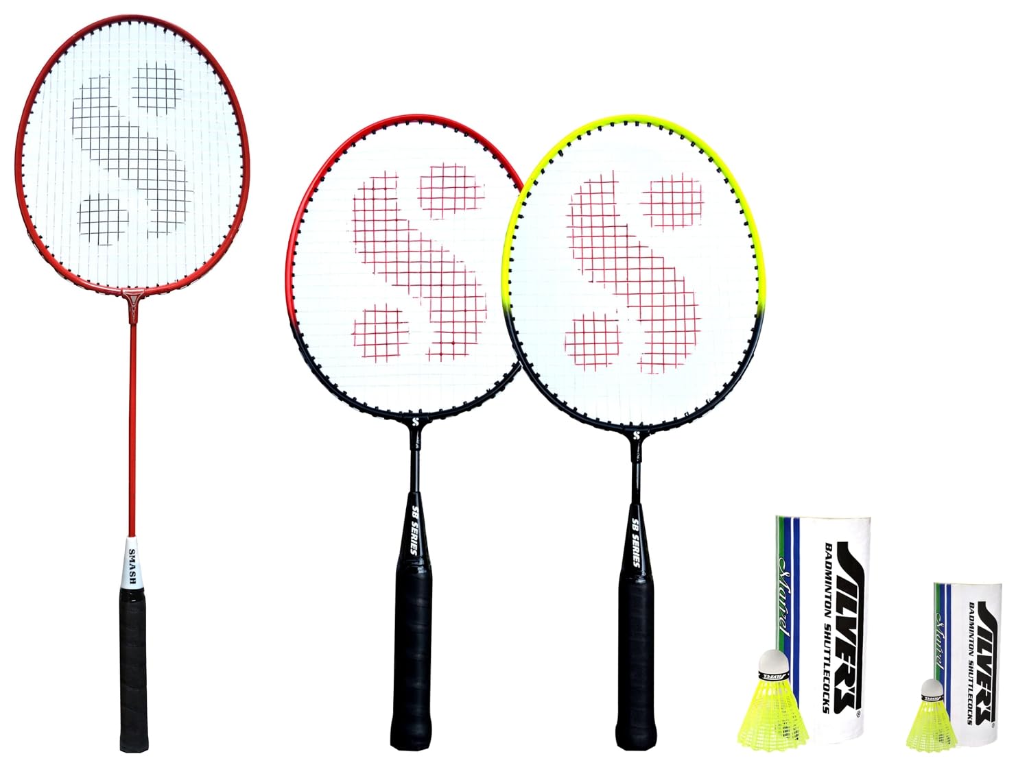 Silver's Junior Pedal Combo-5 (2 Badminton Rackets 3 Plastic Shuttlecock) & Silver's SIL-Smash Aluminum Badminton Racquet Pack of 1 (Red) & Silver's Plastic Shuttle Cock Marvel Pack of 3 (Yellow)