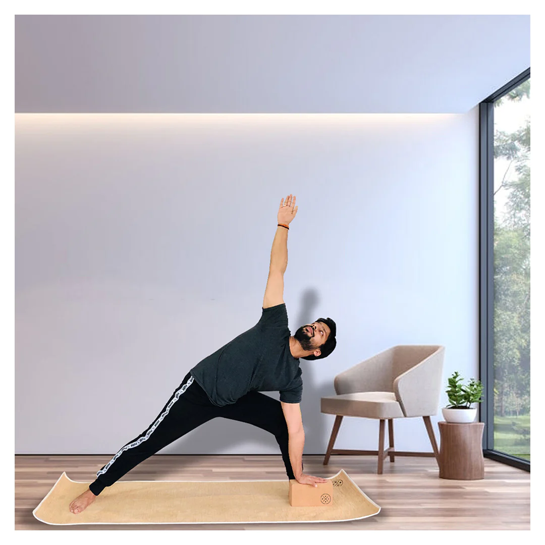 Achieve eco-friendly alignment with our Chandra cork block .This is made of high quality premium cork which will support you in every asana. They are lightweight, firm, anti-slip, odourless with easy and soft grip. Cork blocks are used as a prop in yoga asana practice. The purpose of a yoga block is to help stabilize poses and make them more accessible to yogis of different abilities and body types. In addition, yoga blocks can be used to deepen a pose or stretch.