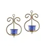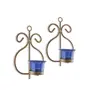Set of 2 Decorative Golden Wall Sconce/Candle Holder with Blue Glass and Free T-Light Candles