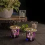 Vintage and beautiful light up this votive in your home and create an aura of mystique and tranquility. Let the candle flames entice you to another world. This exclusive Glass Votive is coated with Silver from inside and ted externally giving it regal touch and feel. In addition decorated with a Gold plated Jewel Ring and Dangler to enhance its beauty and vintage appeal. Simply light a wax Tea-Light inside and enjoy the look.