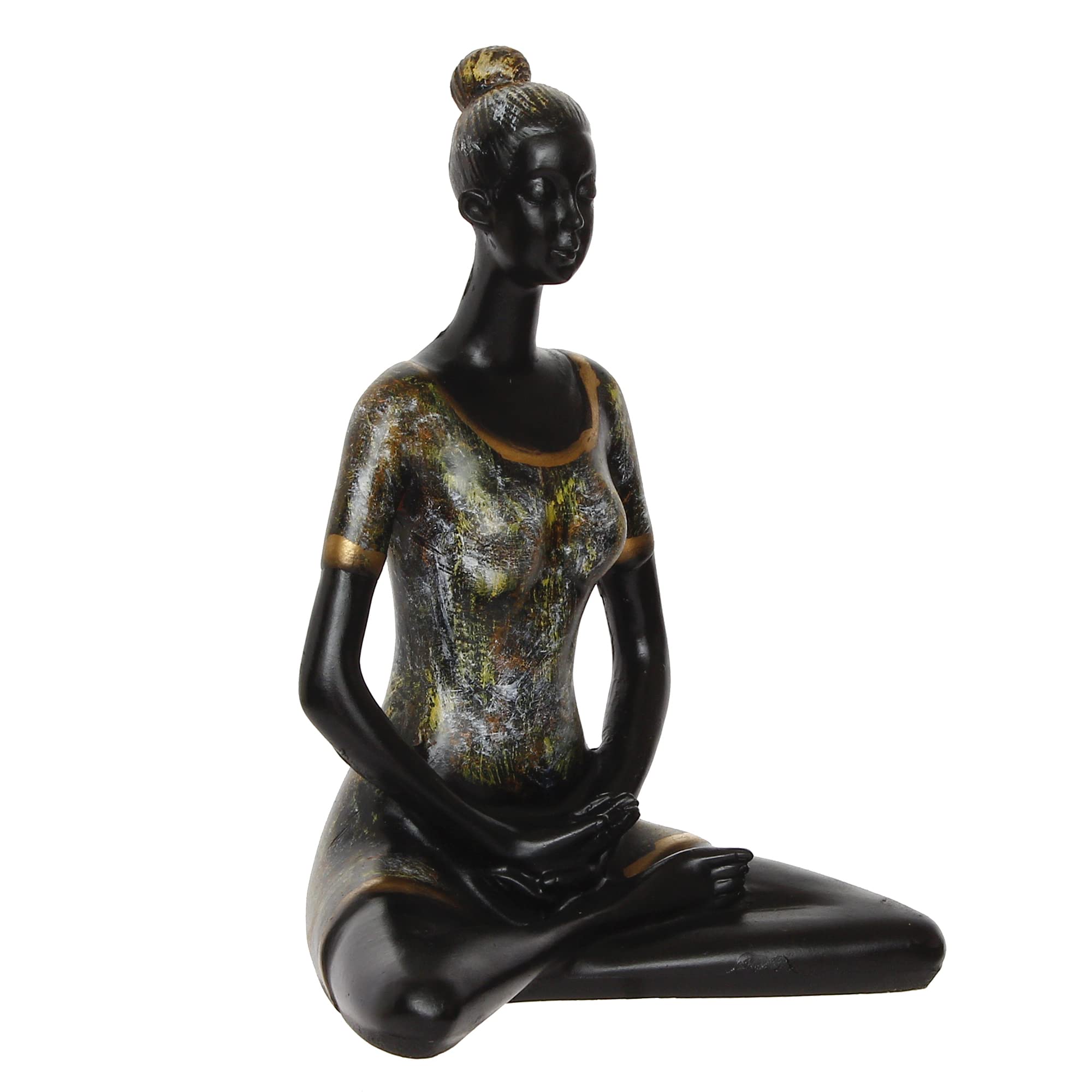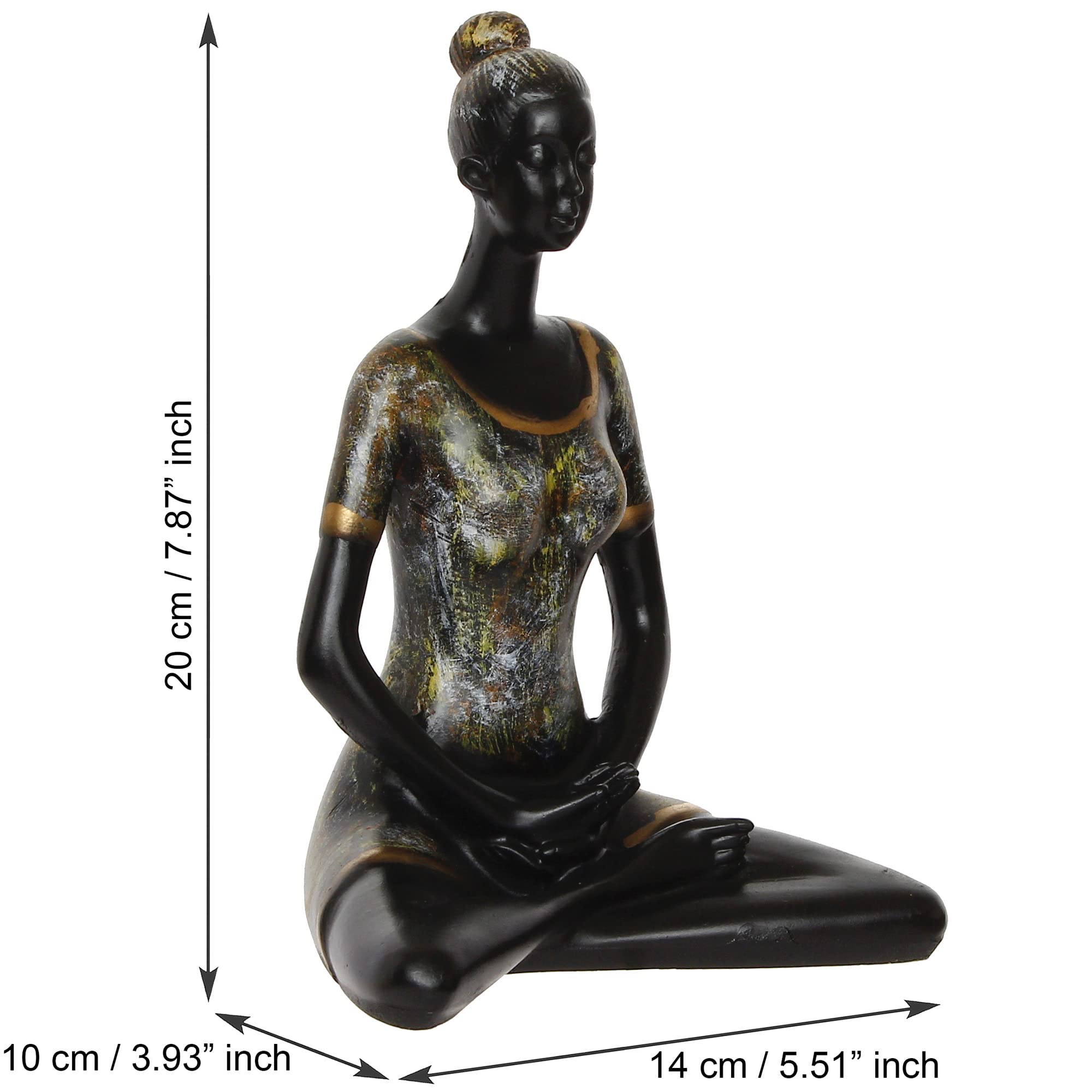 Adorn your home or office decor with eCraftIndia Lady with Folded Hands in Yoga Pose Antique Finish Handcrafted Decorative Polyresin Showpiece which reflects the artistic brilliance and adds elegance to your home or office decor. Style your home and office with this decorative that is sure to be admired by your guests. It also serves as a great gift especially around celebrations and festivities. This handicraft item has been made by skilled artisans at the house of eCraftIndia using various ancient techniques.