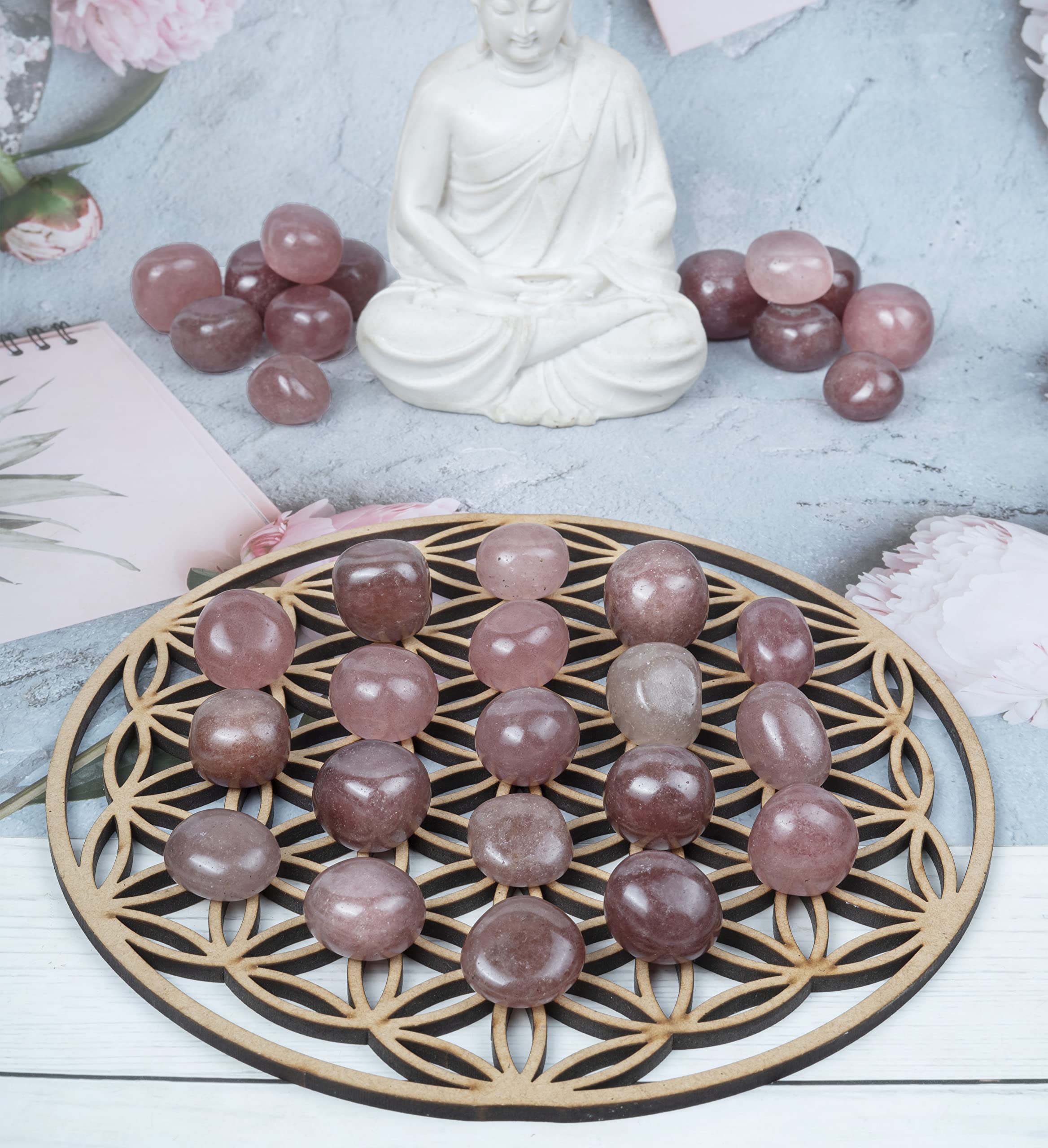 HindCraft Strawberry Quartz Tumbled Stones - Reiki Chakra Healing - Decorative Pebbles & Vase Fillers - Tumble Stone for Jewellery Aquarium Stone Vastu Correction - Home Office Decor (250 Gram)