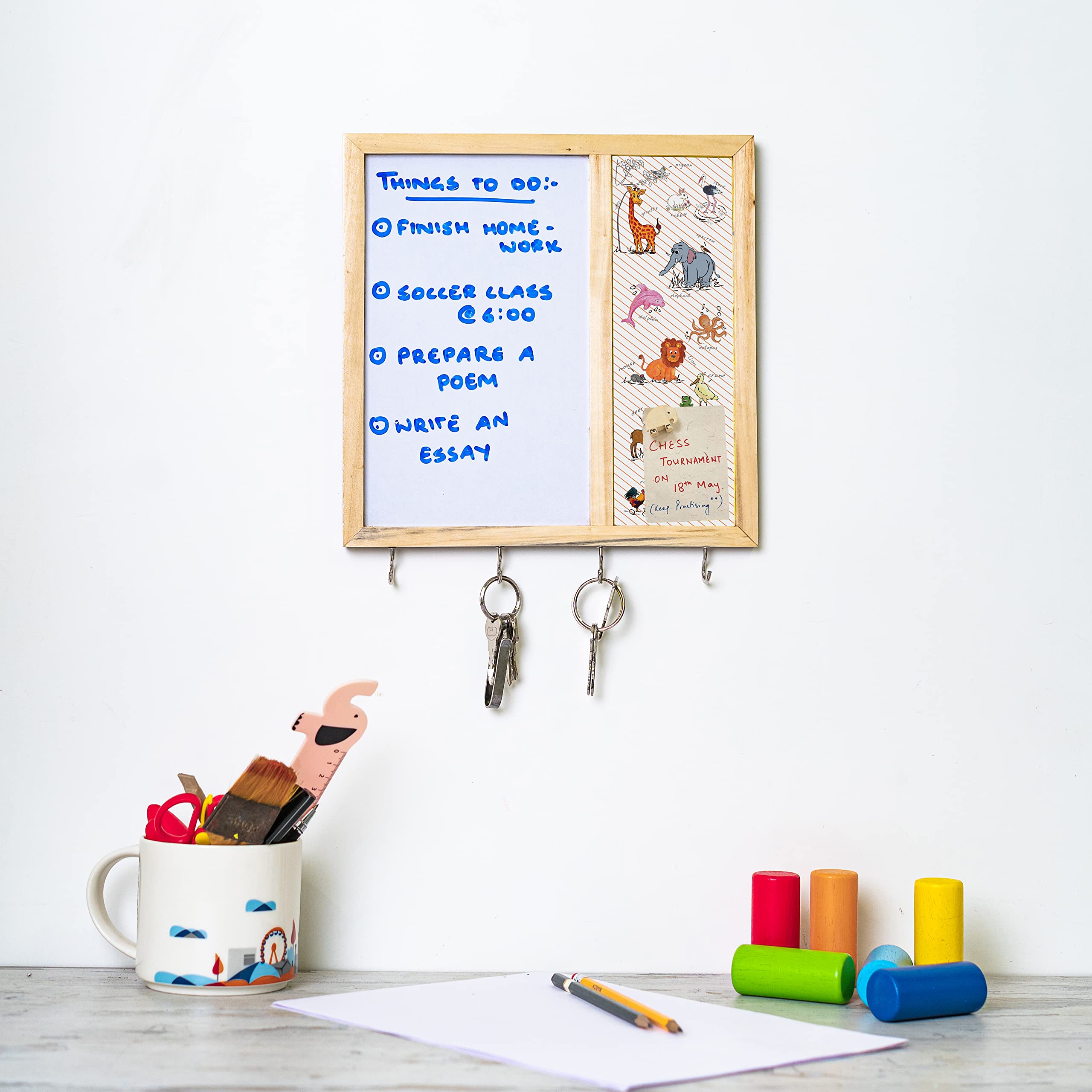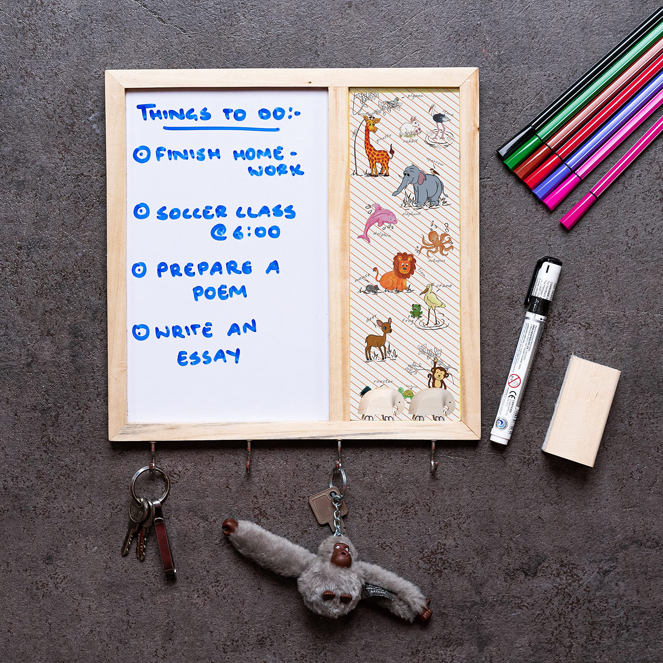 The white board with metallic sheet and hooks is made up of high-quality wood. The white board is easy to wipe and can be easily used by kids to scribble or doodle on it. This product is part of our "Classique" collection. As the name suggests this collection is full of unique products inspired by day to day objects. These products are for those who love to collect innovative products that make you smile every time you see them.