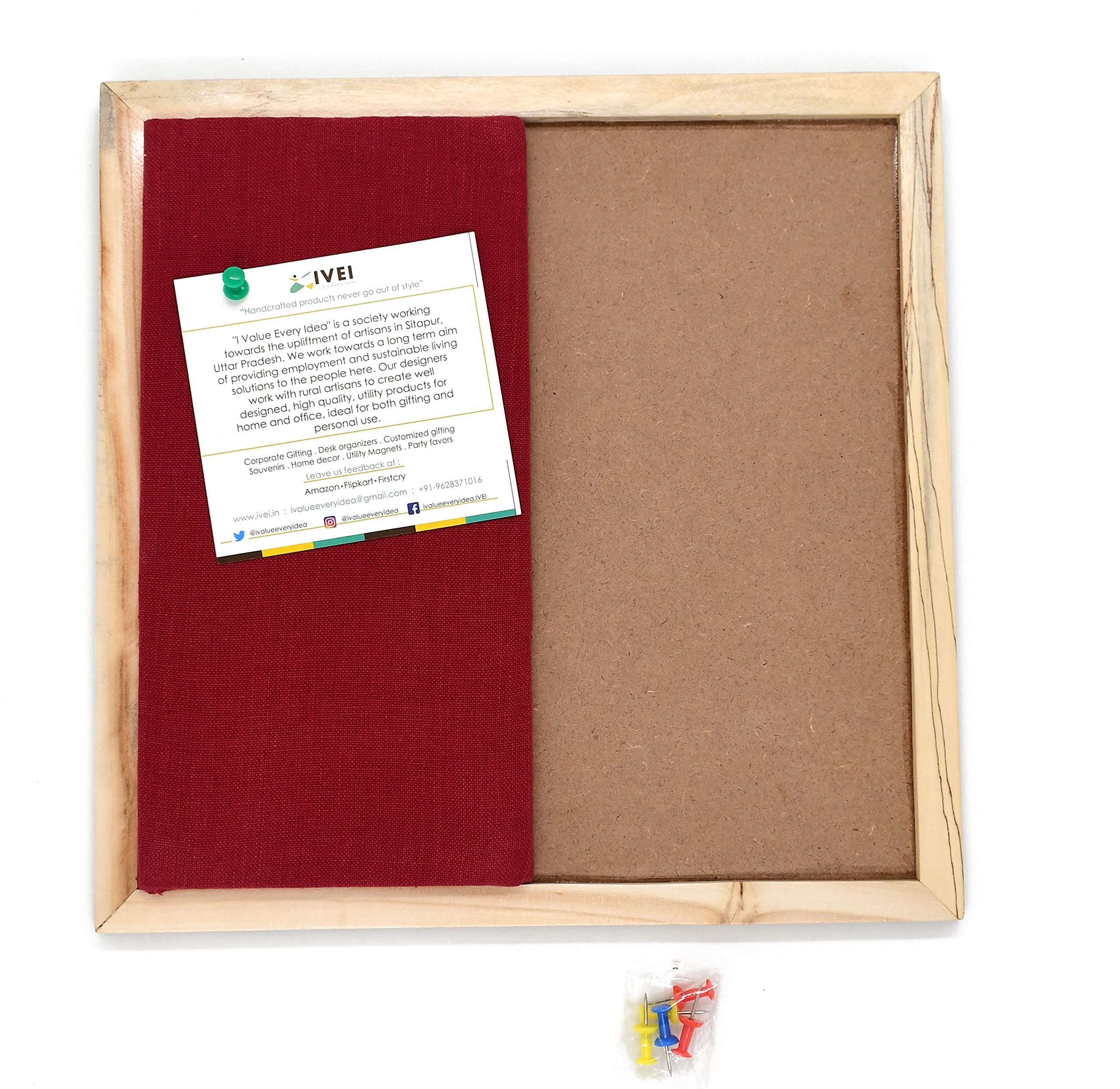 PACKAGE CONTENTS: Board Size: 11 in X 11 in X 0.75 in Pin Board Area: 10 in X 5 in Colour: Brown and Wine
