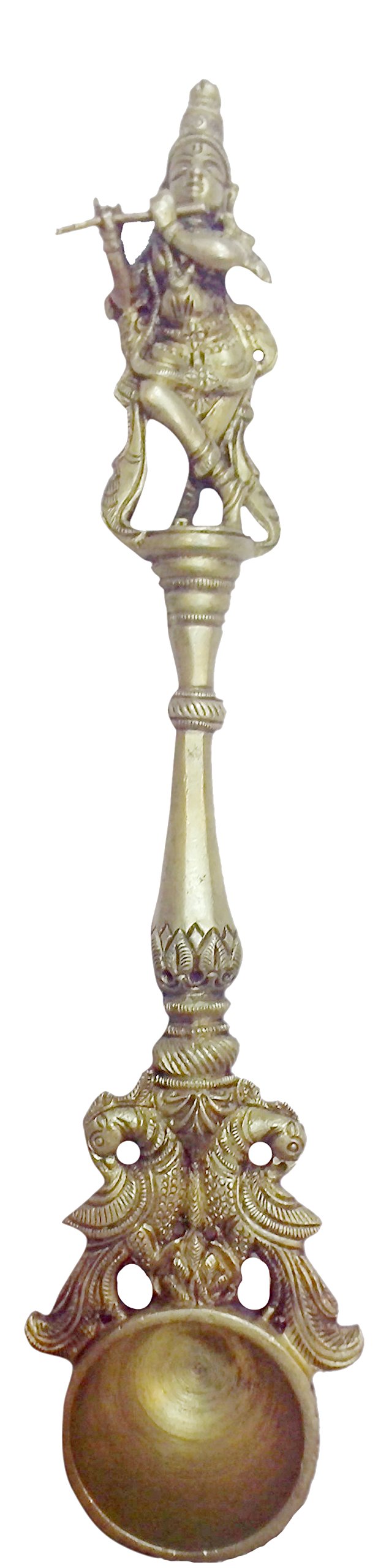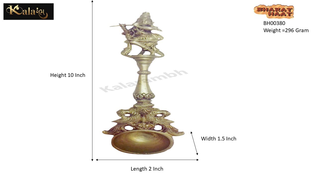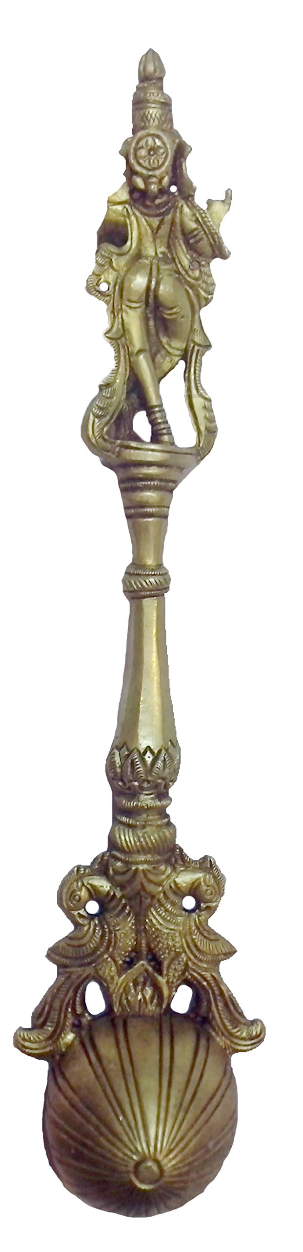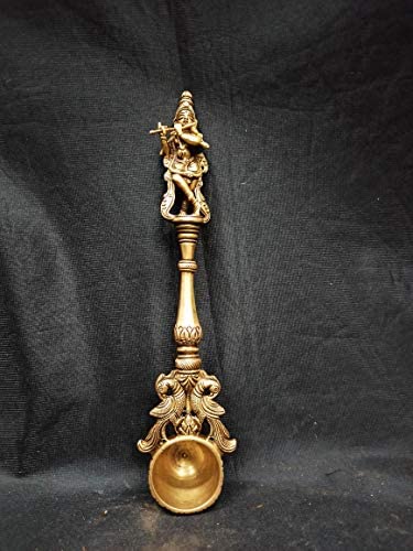 Kalarambh Brass Lord Krishna / Kanha Ji Achmani for Home Pooja Puja Office Mandir Table Decor Items Collectible Handicraft Art Yellow 2 x 1.5 x 10 Inch (L x W x H)