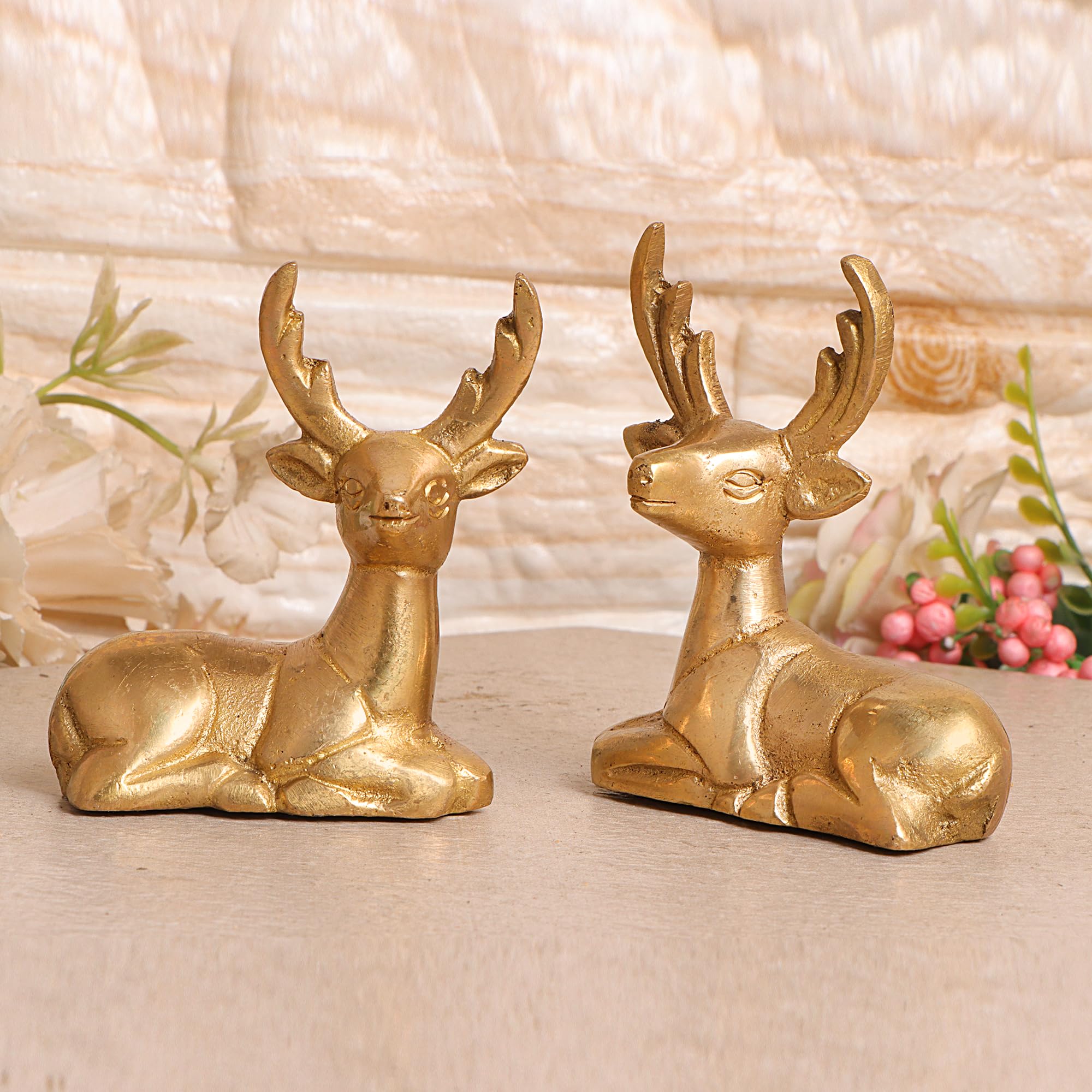 Kartique Brass Deer Pair Sculptures | Elegant Home Decor Showpiece | Ideal for Shelf Display and Gifts 2.6 Inches Height