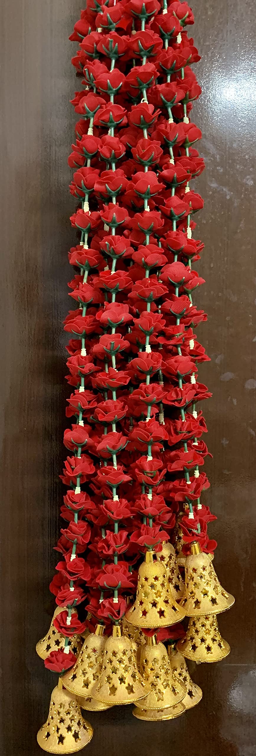 Khadgatta Handicrafts Artificial Velvet Roses With Golden Star Bell Garland for Main Door Toran Home Door Diwali Wedding Decoration Wall Hanging Item 2.10 Ft Approx ( 20 Flowers) Traditional Look Easy To Clean Durable Wedding Haldi Marriage Function Pooja Home Temple etc. can be used on many occasions like Corporate Gifts Diwali Decorations Poojaghar Festivals House Warming Wedding Parties and inaugurations. All type indian festivals. Suitable For Home Temple /mandir Pooja Room Hotels Restaurants Mall Gardens Outdoor Indoor And All Type Event Theme Parties