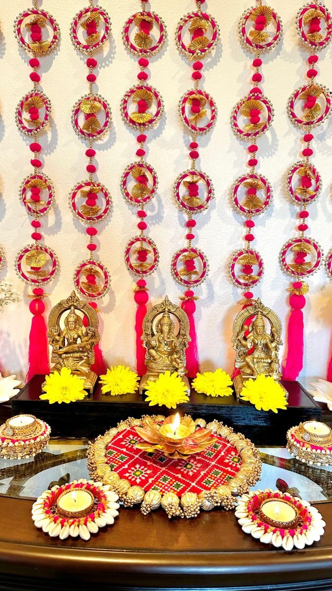 Sellplus handmade torans and garlands for HOme decoration and festival Decoration. Long lasting product A unique and exclusive garland which is completely handmade Made up of pompom beads etc curled to make pompom for the garland. Long lasting product hanging bells strings/garlands/torans/wall hangings for decoration Made in India. Beautiful door hanging Toran for home decoration. It can be used to decorate pooja room home entrance door can be hung like Toran in any design. It can be used for decoration of hall living room or drawing room balcony and garden also.