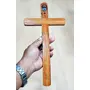 The Holy Cross is the most important symbol of Christian religion. The cross of Jesus Christ symbolizes the epitome of love and self sacrifice. It is a symbol of hope forgiveness of sins and victory over death. This beautiful wooden cross is the perfect addition to any home church or for religious services. As a sacramental the Sign of the Cross prepares us for receiving God's blessing and disposes us to cooperate with his grace. In affirming our belief in the Incarnation the crucifixion and the Trinity we are making a sort of mini-confession of faith in words and gestures proclaiming the core truths of the creed. The Sign of the Cross recalls the forgiveness of sins and the reversal of the fall by passing "from the left side of the curse to the right of blessing".This piece is Best Gift for Christmas Marriage Anniversary Return Gift Birthday House warming Office / Shop Inauguration and Corporate Gifts.