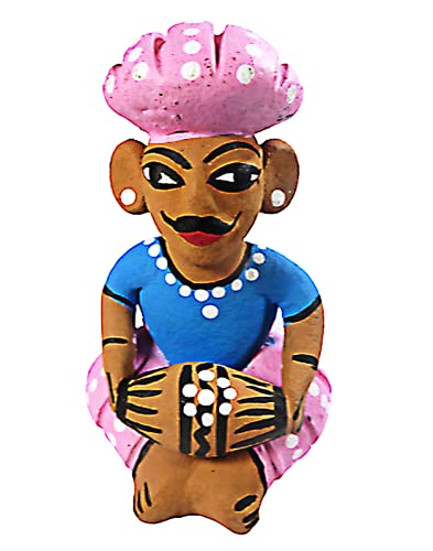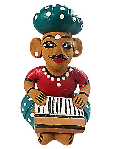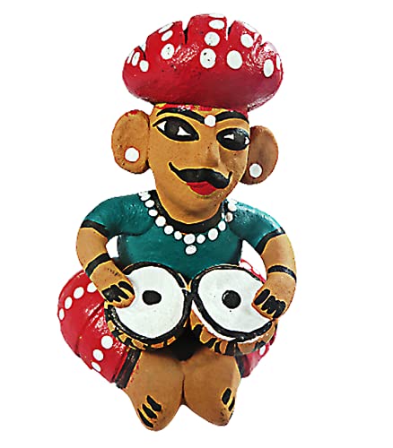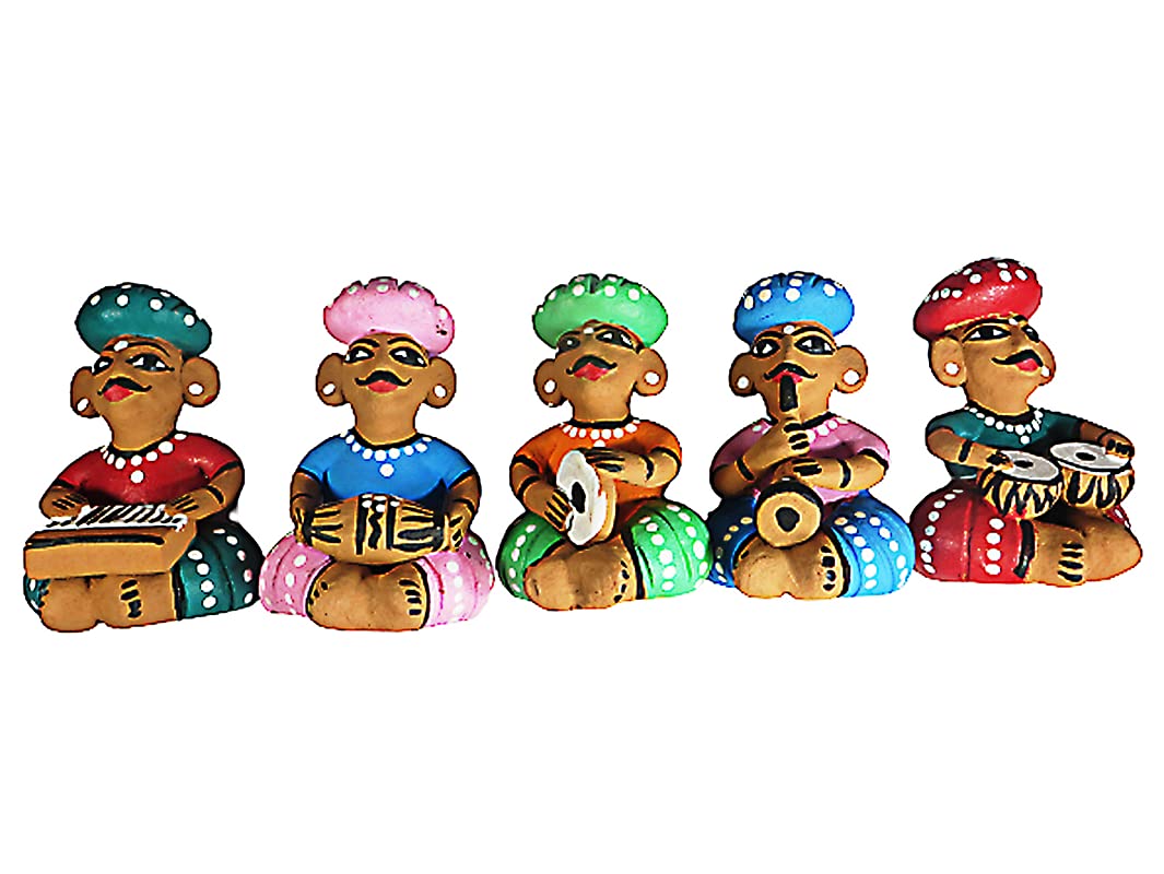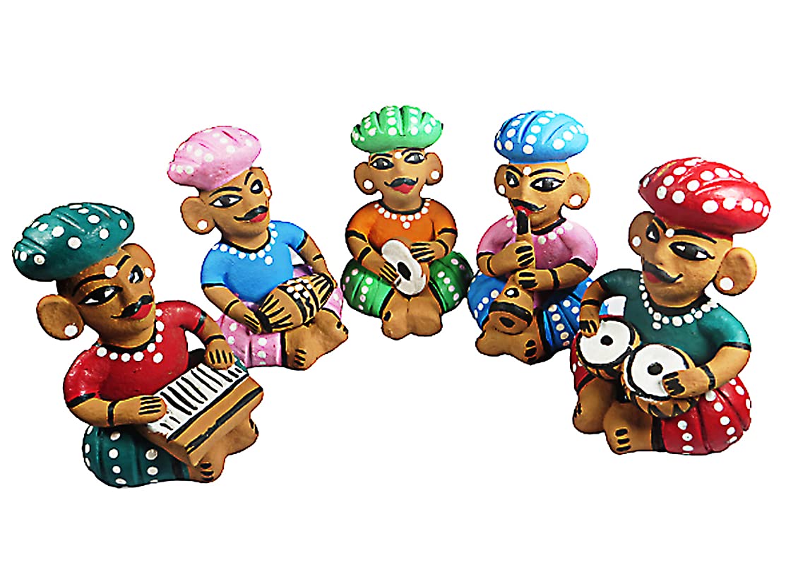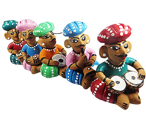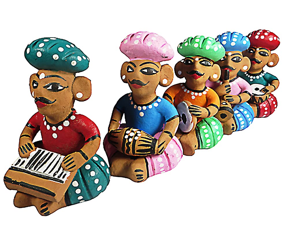 WOOD CARVING WORK Rajasthani Hand-painted Terracotta Clay-made Bawla Musician Set (Five Showpieces with Different Instruments) (Multicolour Length: 39 cms X height: 11 cms X Width; 8 cms X Weight: 1250 Grams)