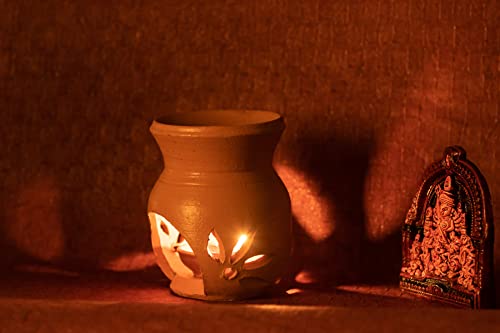 Karru Krafft Handcrafted Terracotta Oil Diffuser/ Kapoor Burner/ Holder and Durga Idol Set for Home Fragrance Pooja Decor Diwali Decor Home Décor