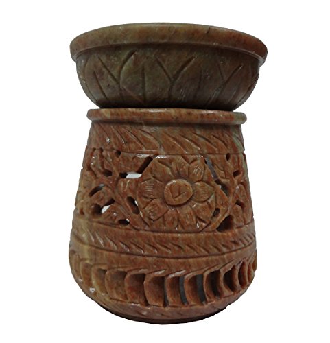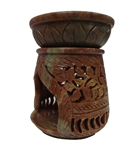 Handcarved Multicolor Oil Burner in Tapered Cone shape made by Soap Stone