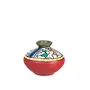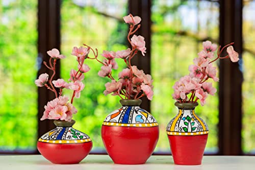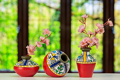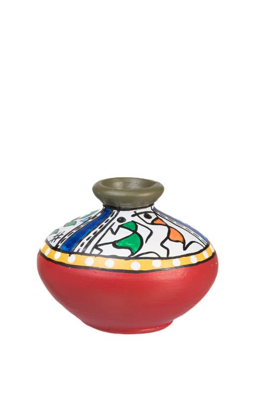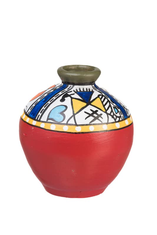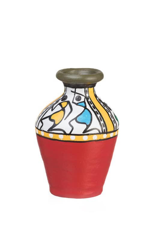Karru Krafft Skillfull artisan created in terracotta and hand-ted with excellent details by skilled and semi-skilled individuwith a respect for art and craft using India's native resources methods and technology that also functions as an ethnic table top adornment. The flower vase has been hand-ted in a circular patch with an indigenous Indian traditional artwork. The small size and uncomplicated functionality are suitable for living room / child's room/bed room/balcony garden decoration Shelf Decoration and Ideal for Gifing making them appear more domestic and bringing joy into your home.