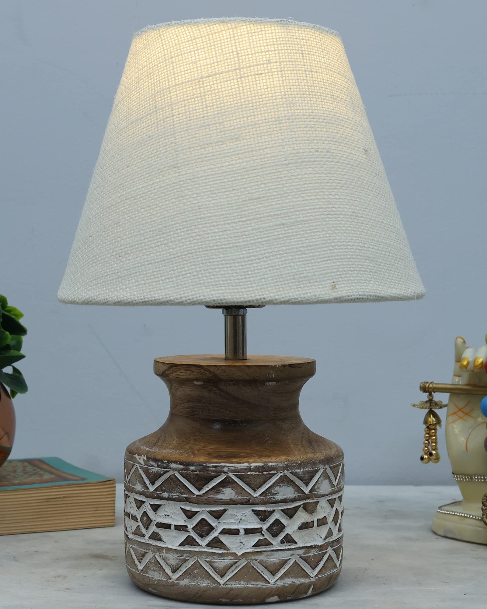Homesake Wood Table Lamp Modern Base Fabric Lampshade for Home Office Cafe Restaurant Whitewash Pot (White Jute)