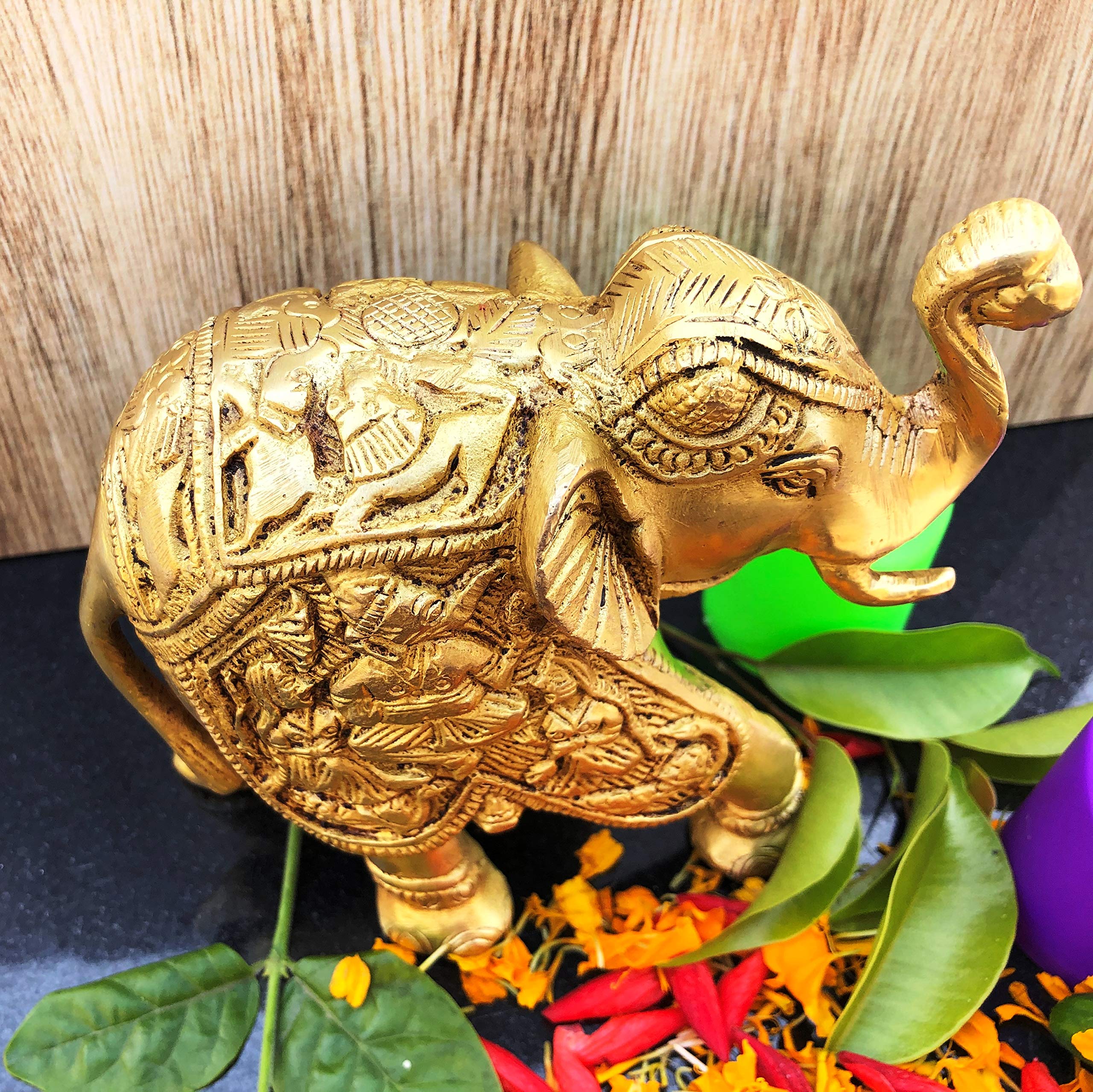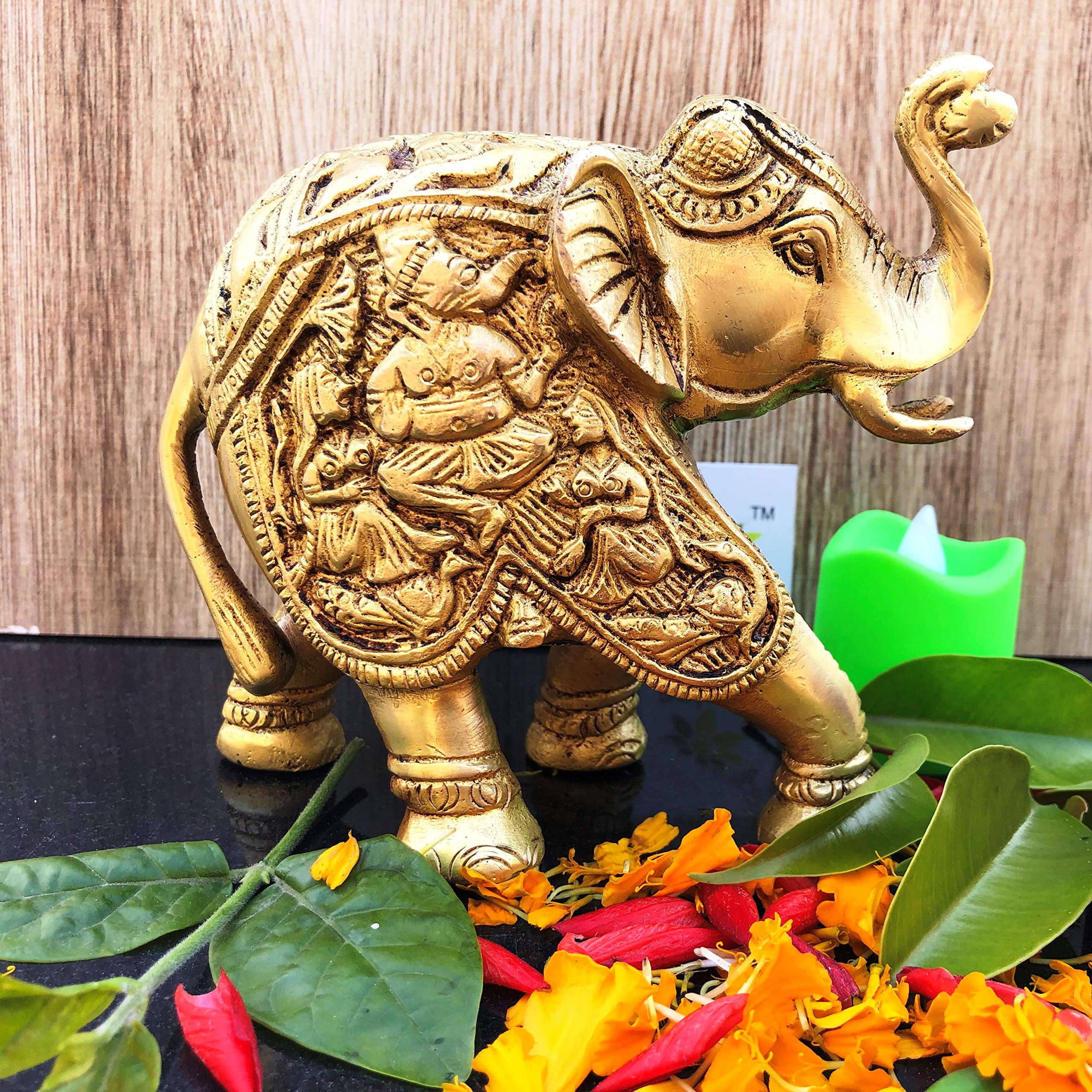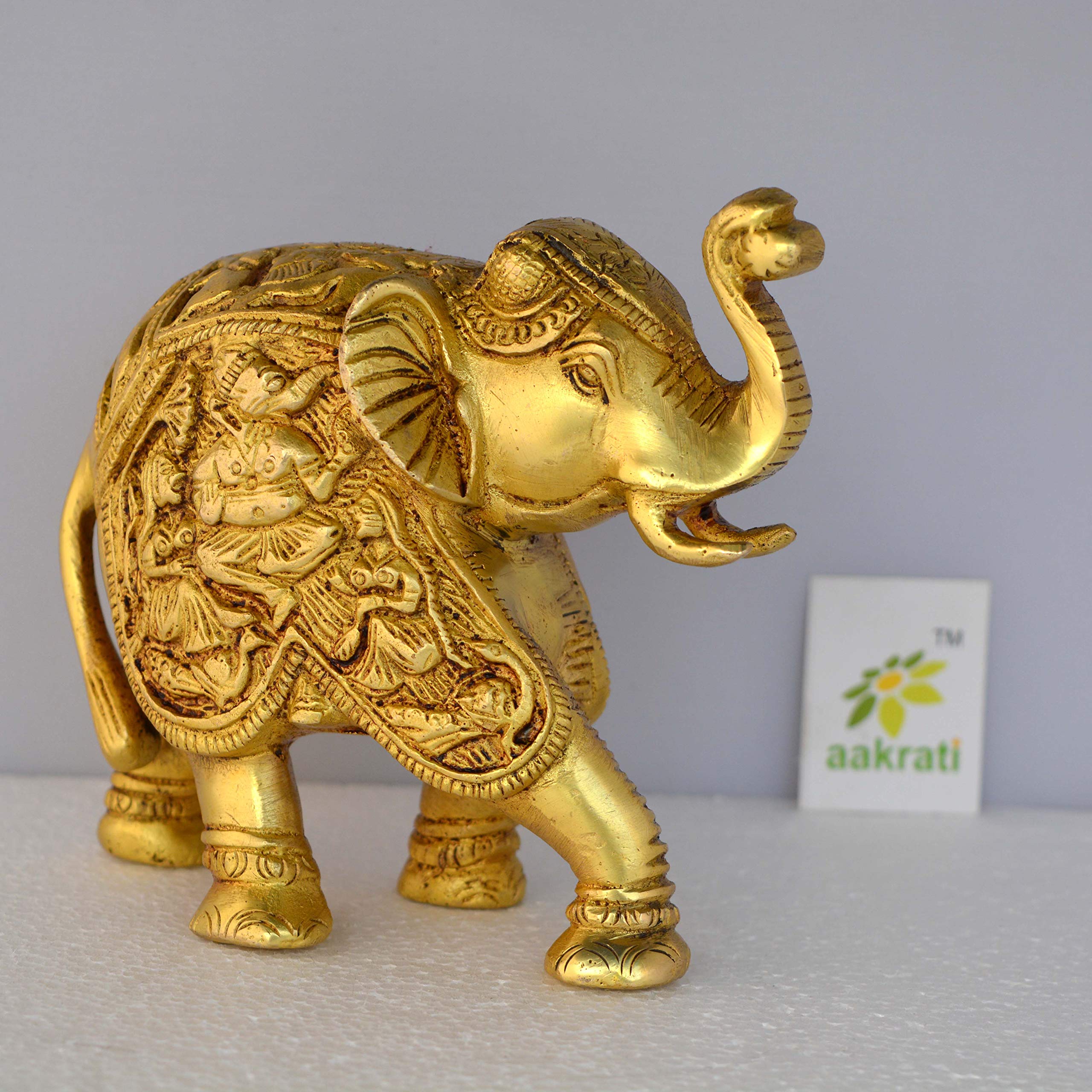 Aakrati Elephant Trunk up Sculpture Made in Brass Metal - Table Decor showpiece for Gift