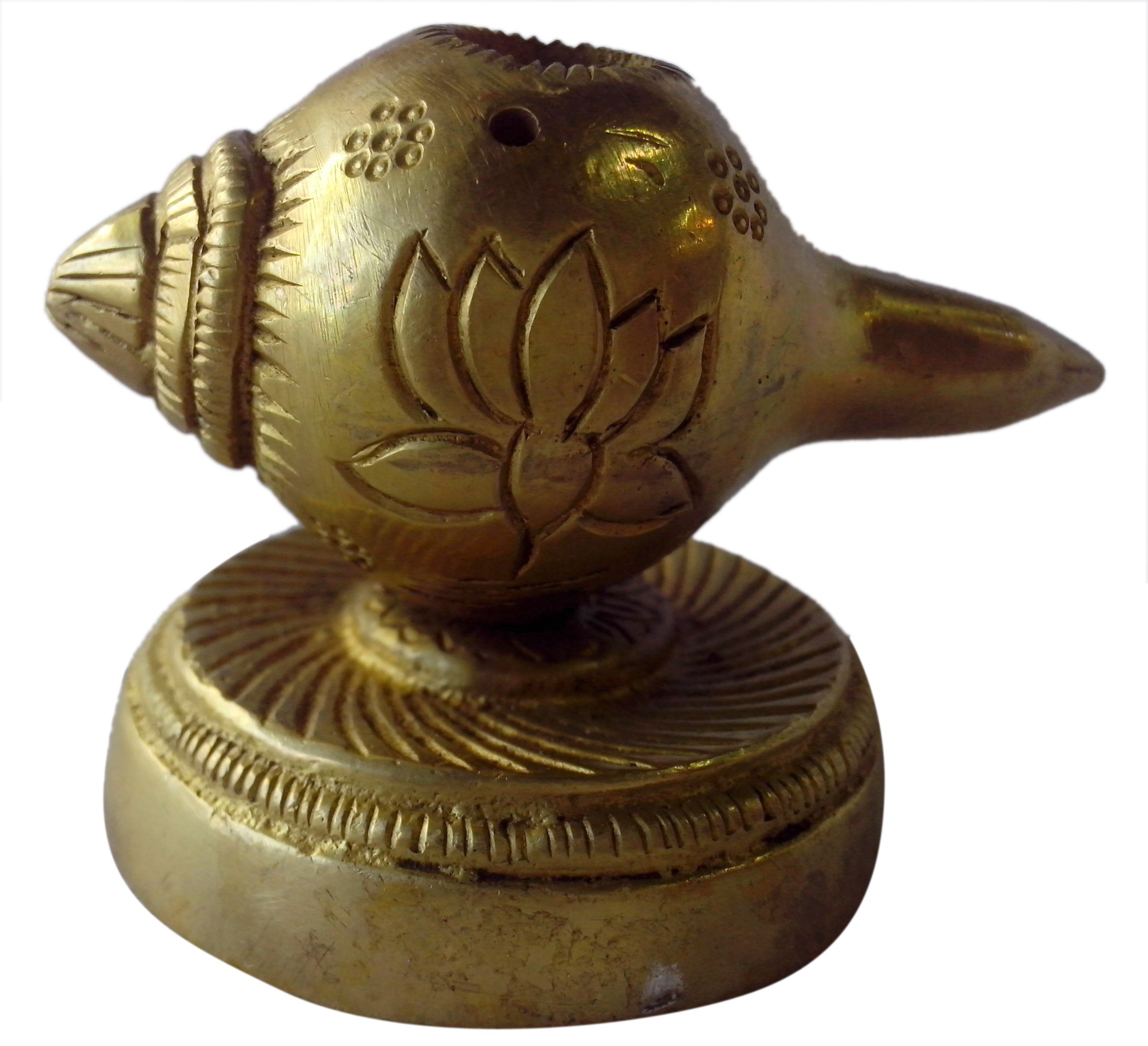 BHARAT HAAT Brass Agarbatti Stand Incense Holder with shankh Conch Design Collectible Showpiece for Puja Handicraft Small Art (2.9 x 2 x 2.9 Inch Yellow)