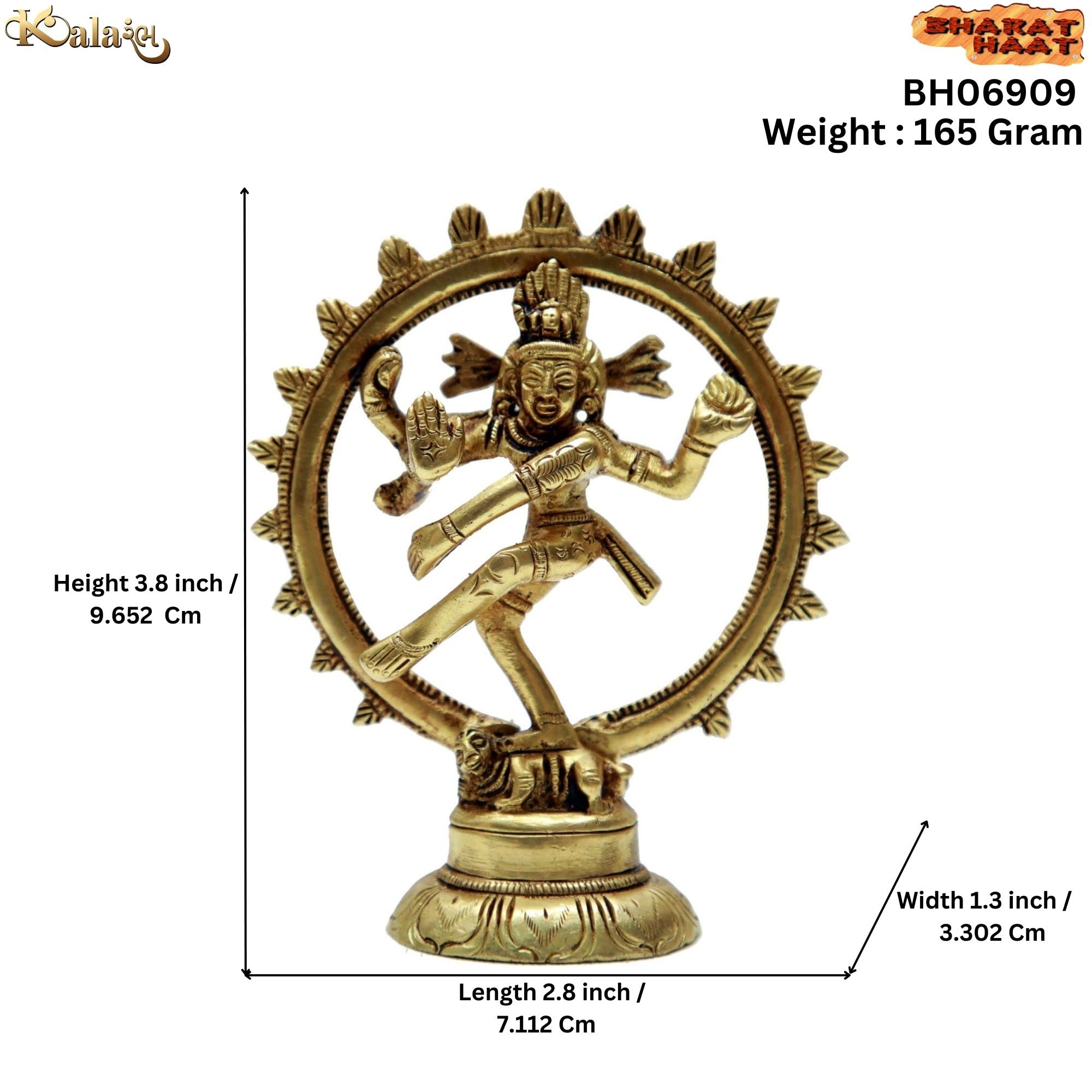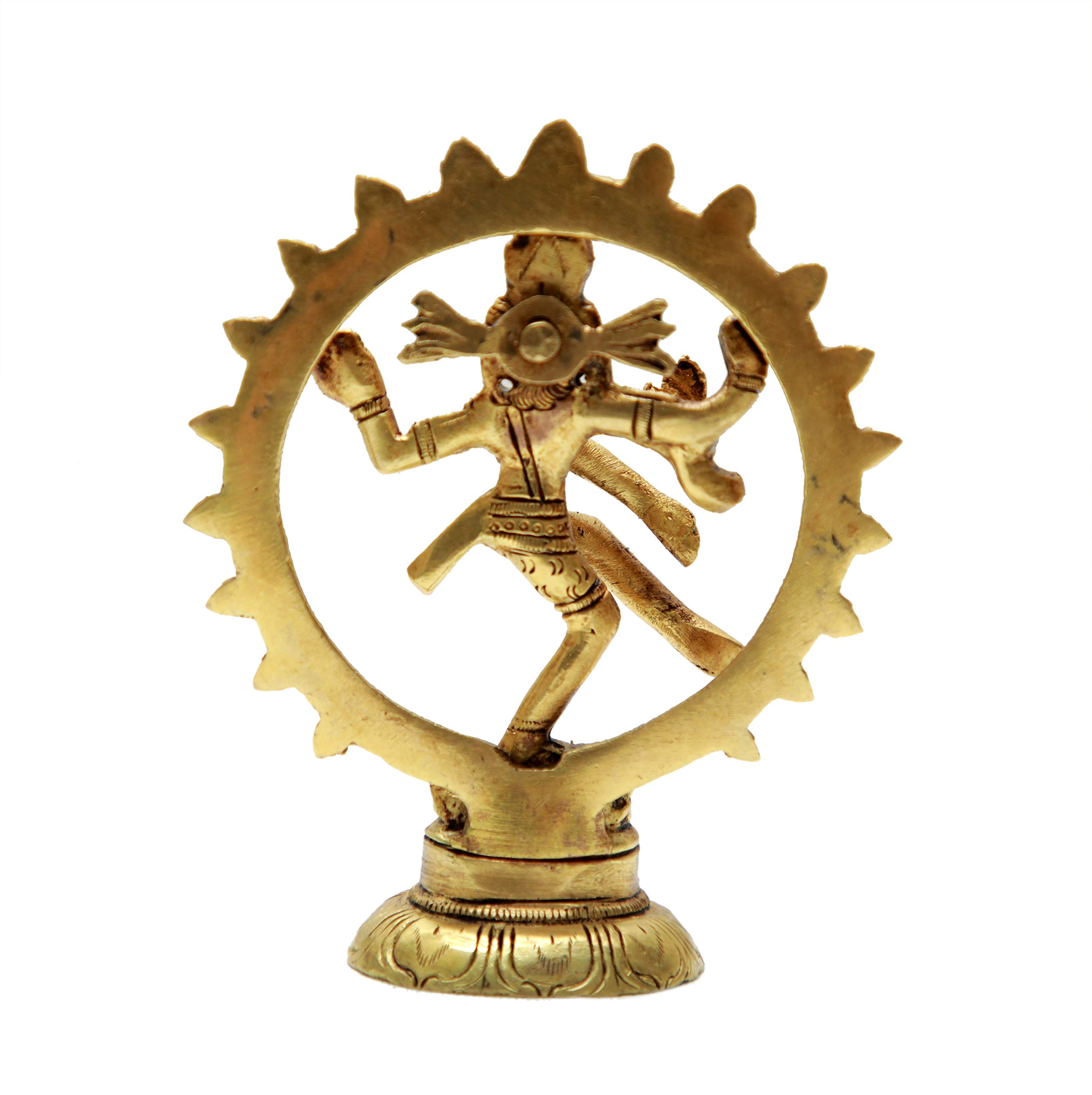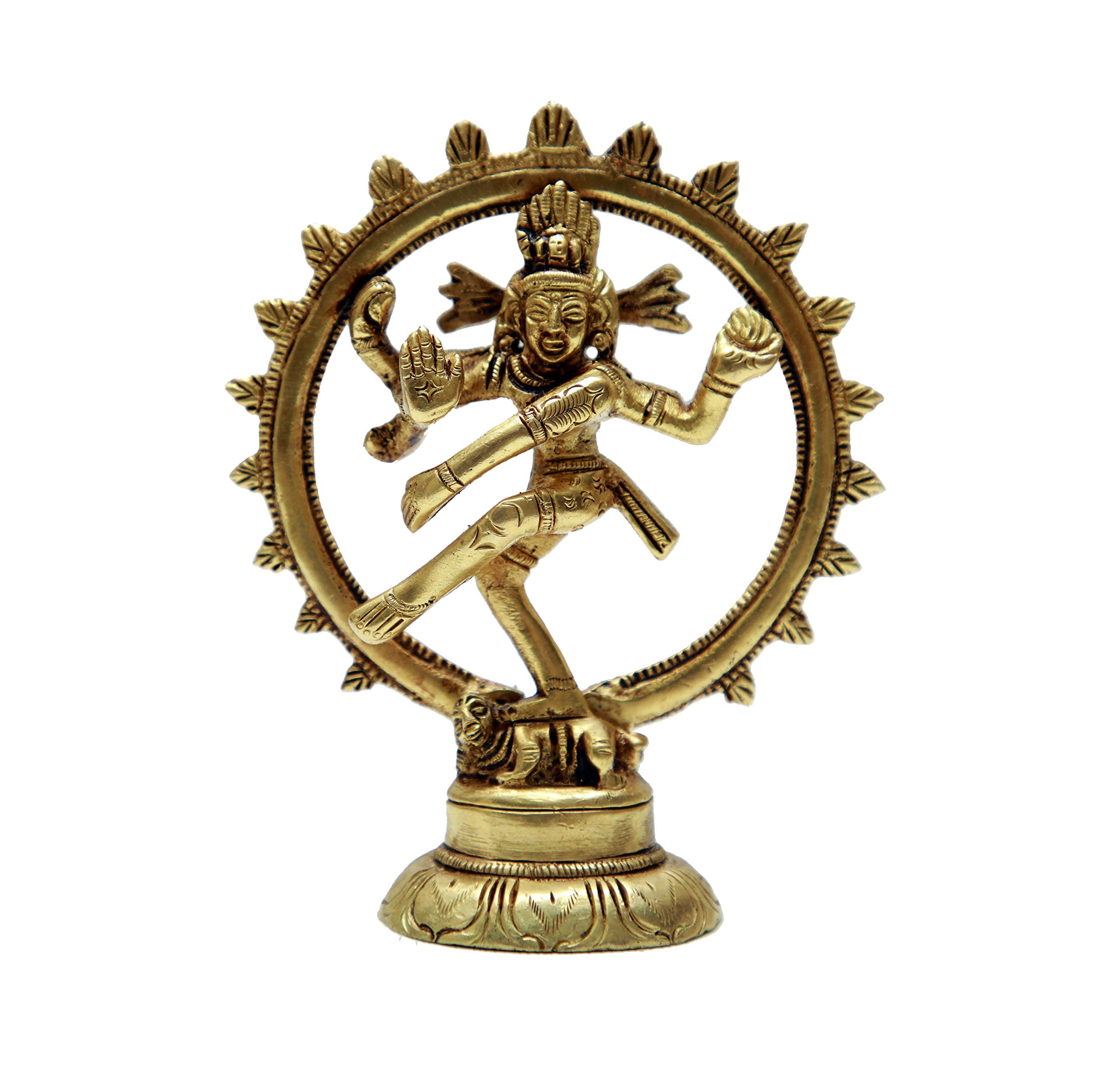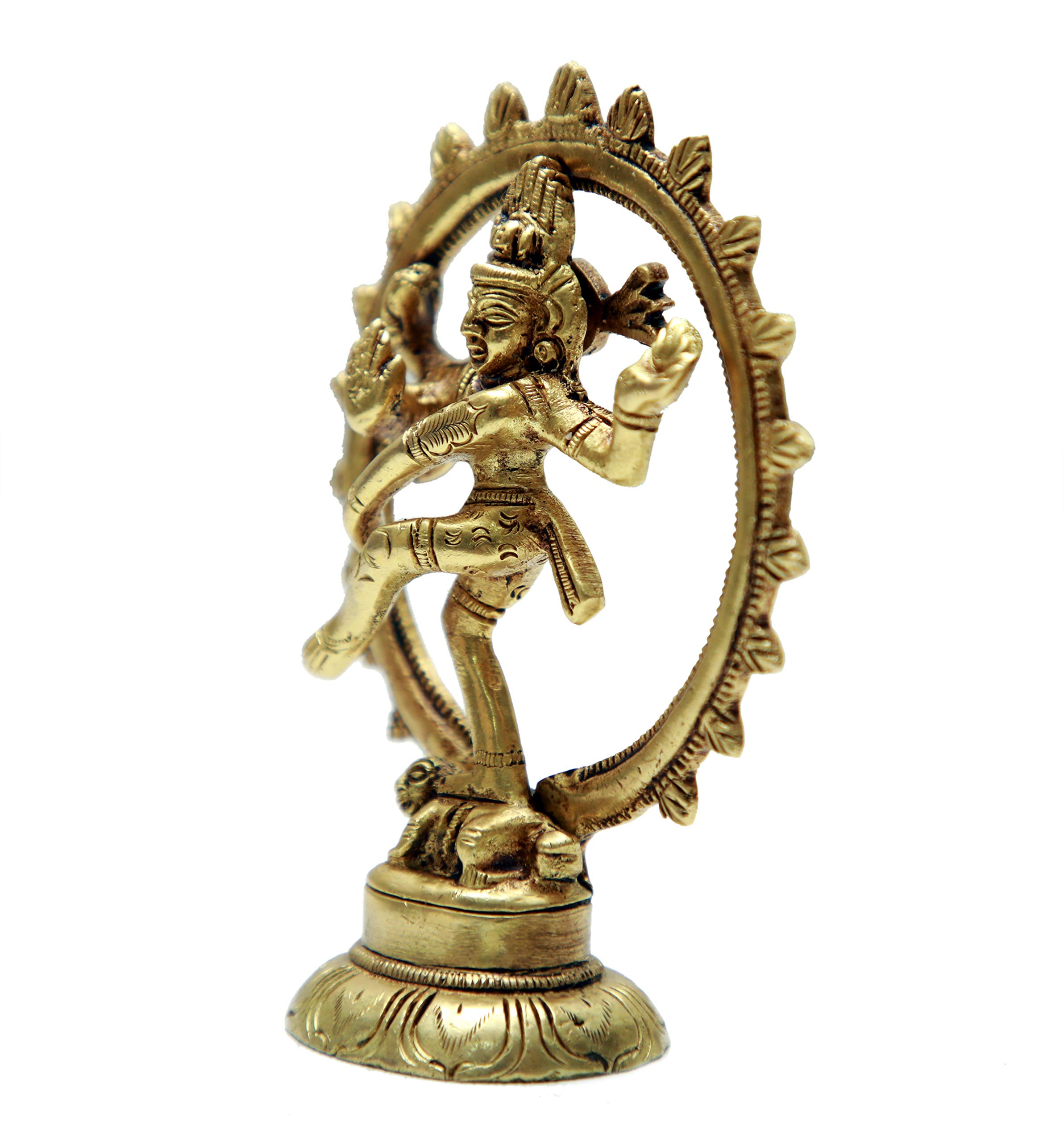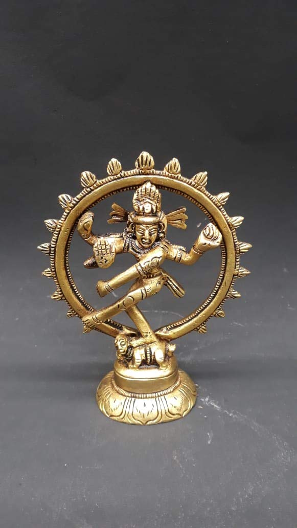 Nataraja (Sanskrit: ????? translit. Na?ar?ja Kannada: ????? translit. Na?ar?jaTamil: ??????? translit. Na?ar?jaTelugu: ?????? translit. Na?ar?ju meaning "the lord of dance") is a depiction of the Tamil mythology Shaiva Siddhanta as the cosmic ecstatic dancer. His dance is called Tandavam or Nadanta depending on the context of the dance.The pose and artwork is described in many Hindu texts such as the Anshumadbhed agama and Uttarakamika agama the dance relief or idol featured in all major Tamil temples of Shaivism.Collectible Brass God Nataraja Handicrafts small Art For home/office/temple decor by bharathaat.