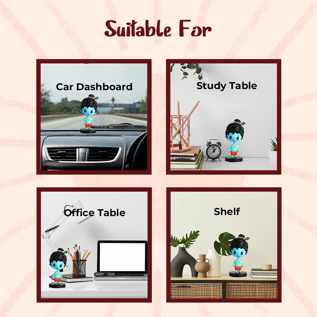 HomeHomeHome AccentFigurinesBUDDYZ Lord Shri Krishna Idol for Car Dashboard Bobblehead Home Decor Items for Living Room Office Desk Murti for Gifting Statue for Good LuckSuperhero Action Figure Little Mor Pankh and Bansuri