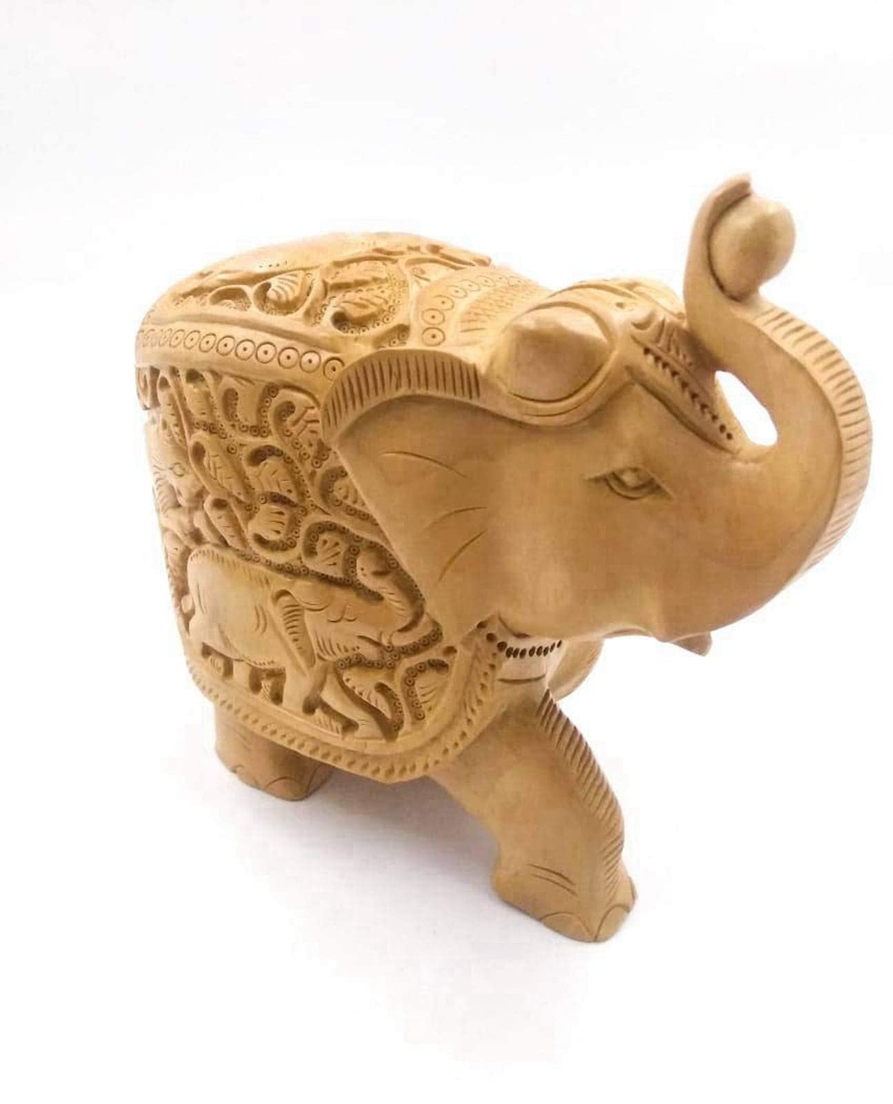 An elephant symbolizes Buddha and the Lord Ganesha to bring home strength good luck and harmony in family bonds. Welcome home the good luck by placing a statue of an elephant or a pair at home.Hand-cast collectible using real crushed marble bonded with museum quality resin for your home gallery.Each piece is individually hand-finished by our artisans Ideal piece for home office or gallery.Fabulous and striking focal point in any room. CHURU SANDALWOOD CARVEDbringsto you an endless range of artifacts. INDIA reflects the diverse history and religion and its immense love for art and culture. Indian handicrafts are known for their excellent design and appearance. Its diversity is so rich and diverse that an attempt to capture it on a single platform was never made. Fascinated by the urge to preserve enrich and create incredible treasure ofcrafts that touches your soul.
