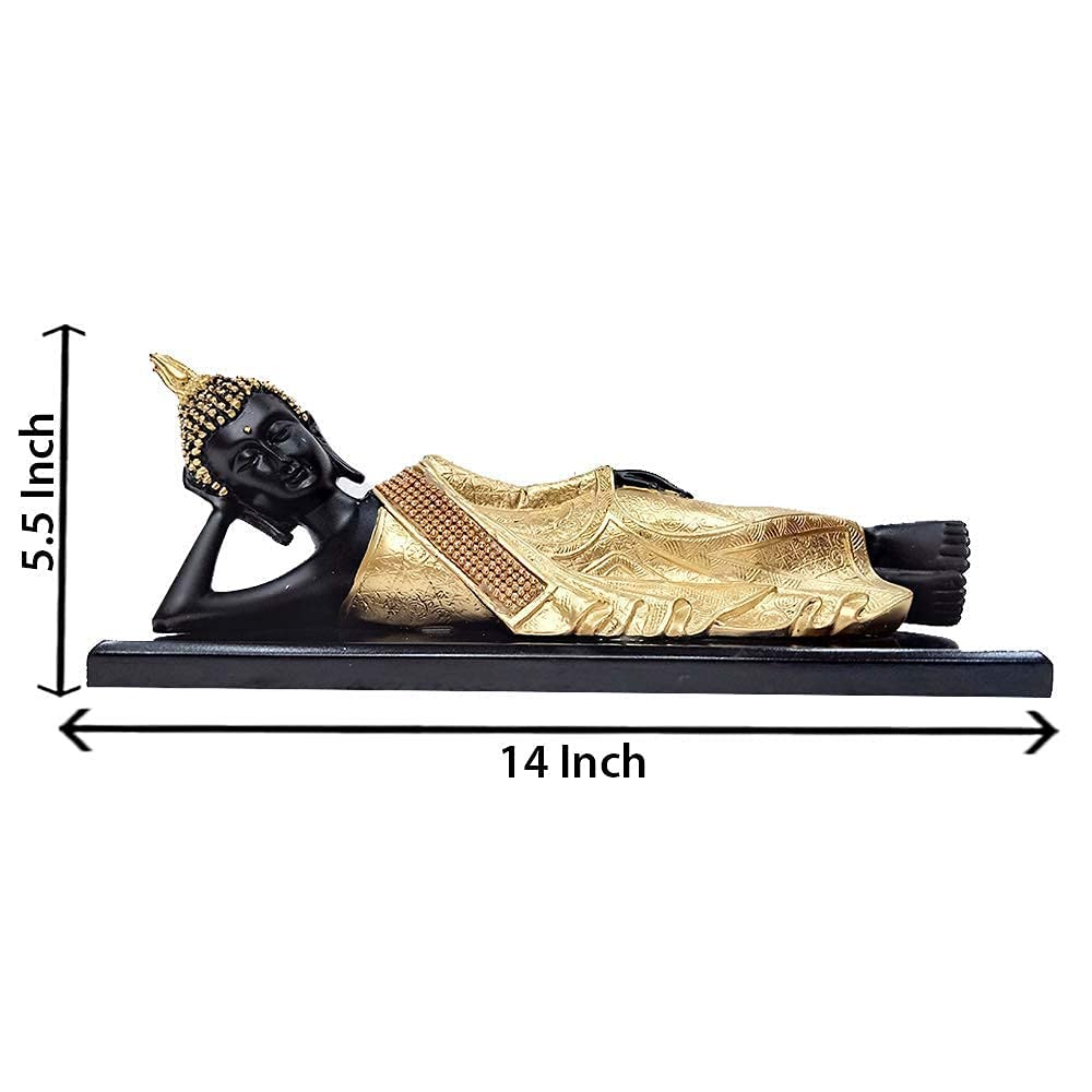Content- One Polyresin Reclining Buddha Idol on Wooden Platform (L X B X H - 35 X 10 X 13) cm