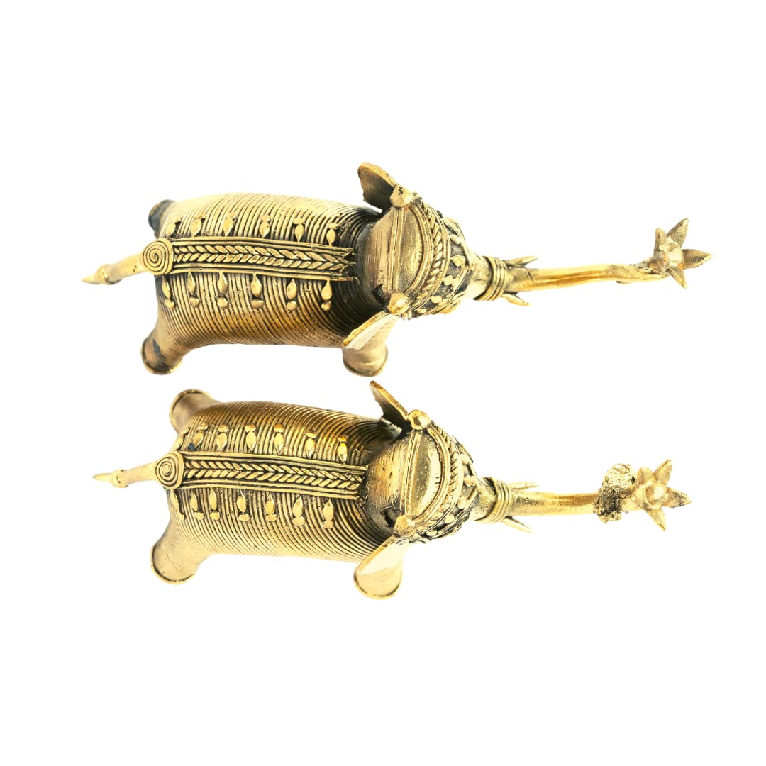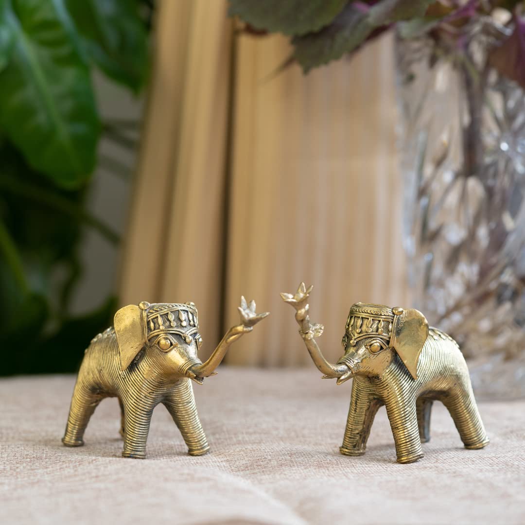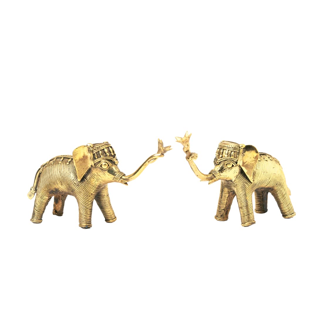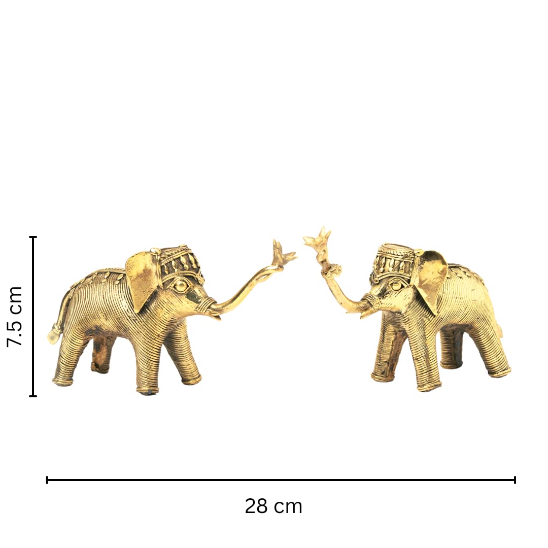 Since ancient times elephants have represented strength and wealth. They also symbolise royalty because monarchs rode them in processions and they were portrayed as the Gods' mounts. Thus this brass sculpture elephant represents the elephants that are revered as emblems of their deities by millions of Indians and play an important role in their daily life. Elephants have always been associated with luck wisdom fertility and protection. The elephant duo works great as a gift office decoration and home accent.