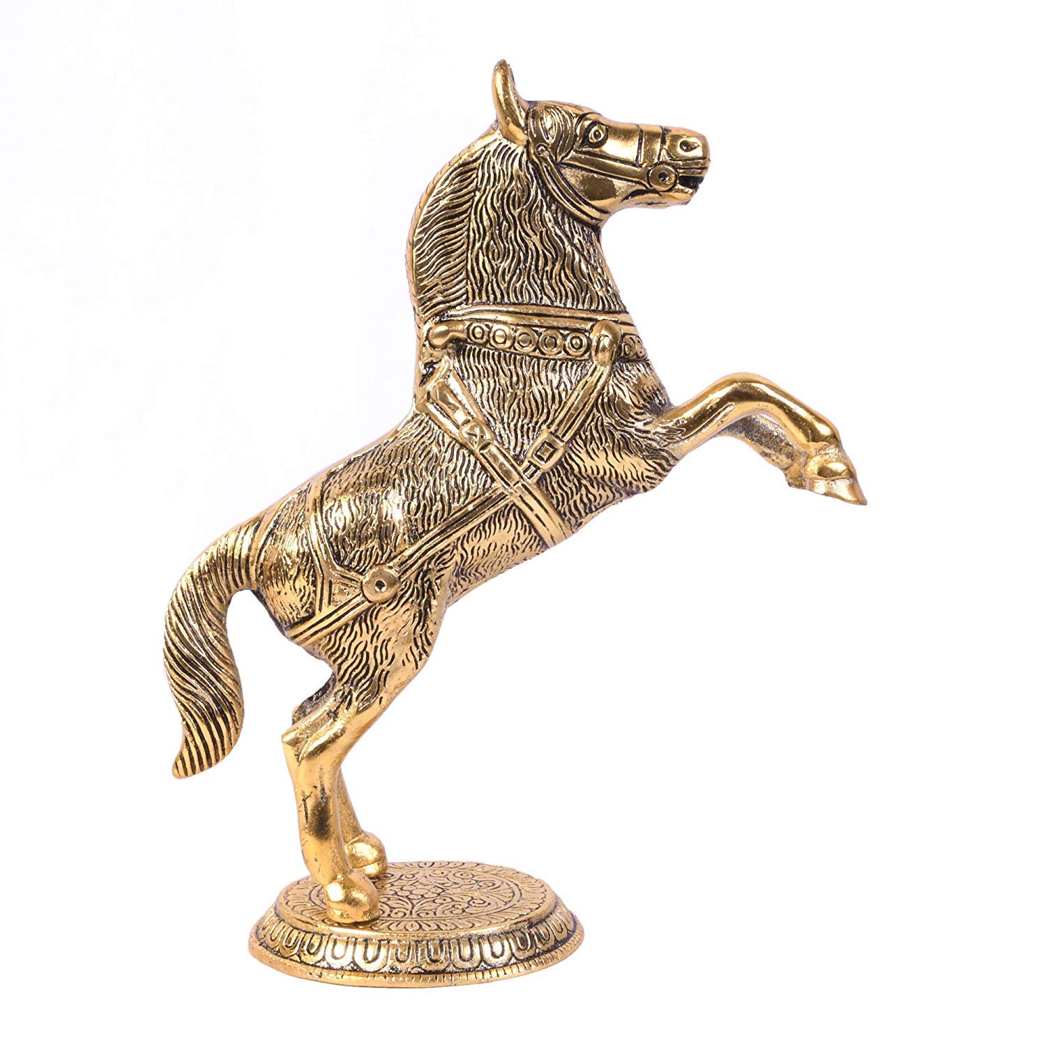 DHOKRA CRAFT Metal Golden Finish Horse with antique finish so looks very beautiful and use for the purpose of worship and for home decorative. It's design to looks traditional stylish and inspiration from the day's of royal touch that is made in white-metal casting with silver antiques finish white metal to bring elegance to your home. This is hand made handcrafted items use it to religious worship of god&goddess. That is use and utility items & an ideals gift it to your dear once to pass on your best wishes that is an ideal gift for have House warming anniversaries birthday wedding gifts return gifts corporation gifts religious-gifts & Indian festivals. Our White Metal Gold Plated Showpieces is an impressive piece of art that is made from the finest-grade raw materials and intricately designed by our teams of adroit designers and craftsmen using high-end technologies.