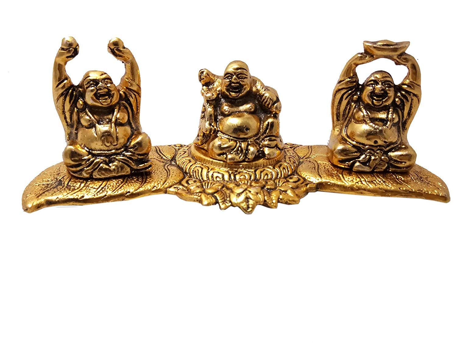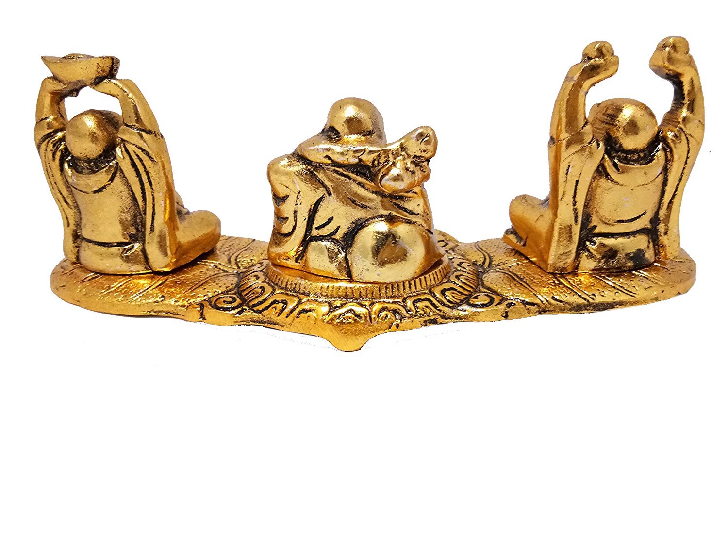DHOKRA CRAFT Laughing Buddha Metal Handcrafted Showpiece Set of 3 Golden