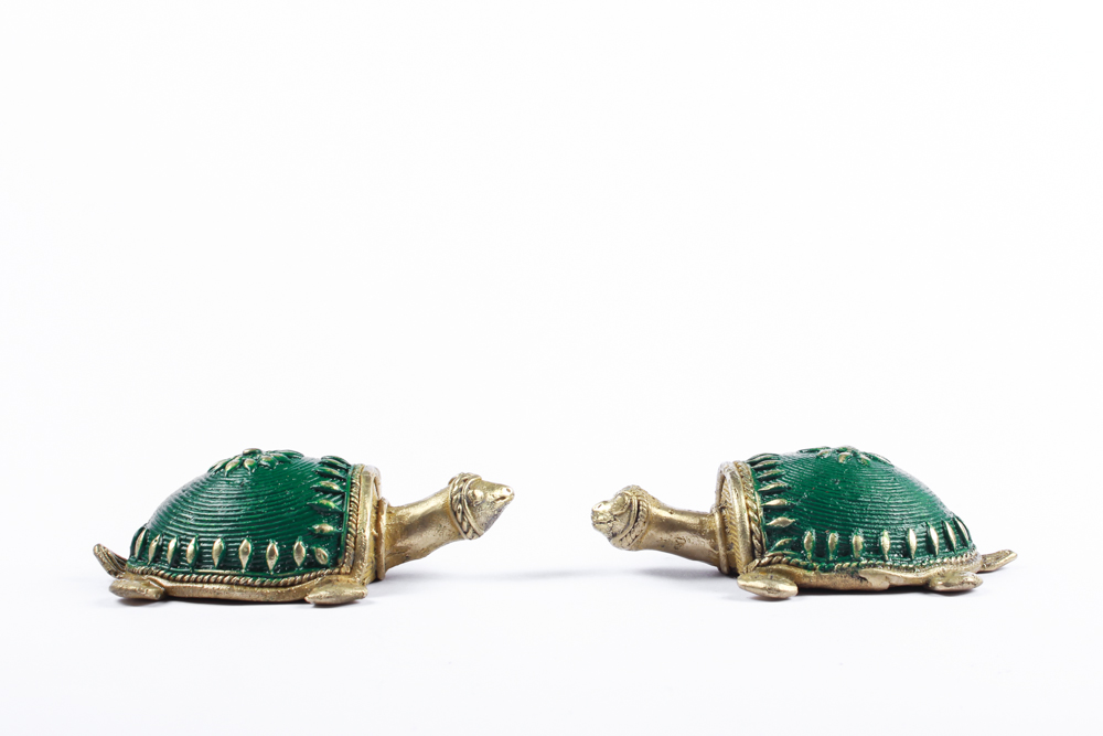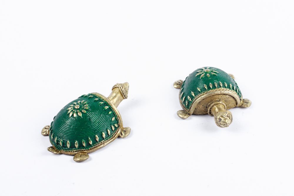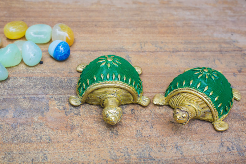 This tortoises made of bell metal makes for an attractive piece of home or office décor. Keep it for yourself or gift it to someone you love, it oozes a positive vibe and transforms the space completely. Available in five eclectic colours, choose the one that fancies you.Disclaimer: Given that this product is handmade and intricately designed; there may be slight variations in the product. Such variations are inherent in the manufacturing of handmade products.