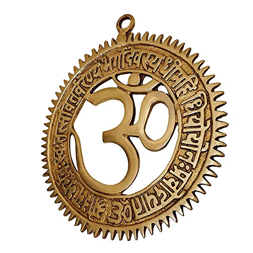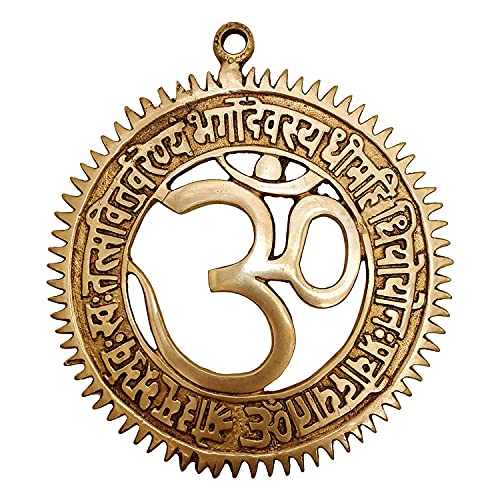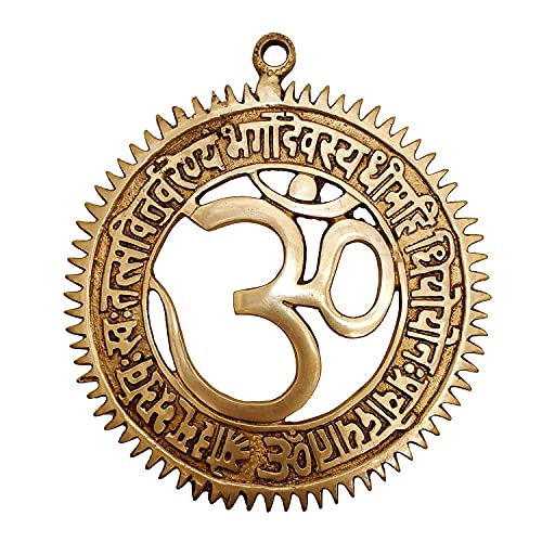 GURU JEE handmade Om wall decor hanging. Gayatri mantra with embedded OM brass wall hanging for living room pooja room entrance door office and reception. Om wall hanging the Om with Gayatri mantra is extremely used as a source of positive energy in home and offices. The Gayatri mantra and Om symbol wall hanging is a perfect combination for home temples and puja rooms. Gayatri mantra carved onto it replicates the perfect combination of spiritual peaceful environment. Statue from India Om wall hanging with Gayatri mantra for vastu and feng sui om wall sticker brass design for home temple door wall decoration. Add a religious touch to your home interiors by buying this om wall hanging with Gayatri mantra . Featuring an excellent finish this wall hanging looks extremely classy and elegant. this royal piece of art simply shows that how can a simple work of art turns into a master piece . it can also serve as a great gifting option for your loved ones family and friends. this statue has been diligently handcrafted by skilled using various conventional techniques. Wall Hanging Spiritual OM Gayatri Mantra Wall Hanging. Use dry cotton fabric to clean dust to elongate the look and lustre of the murti.