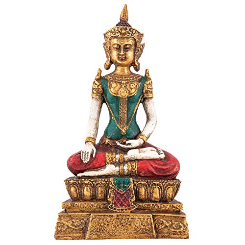 This handcrafed elegantly designed statue depicts Lord Buddha in his calm and serene form indulged in Bhumisparsha Mudra. The skill of the craftsman is evident in this statue as you can see the admiring smile and vision of Buddha in his meditating state. Made of polyester resin (Polyresin) this statue of Lord Buddha is resistant to rust moisture and weathering. It is very easy to care for this statue as it can be wiped clean with a cloth to get rid of any accumulated dust. Gift this admirable artefact to yourself or to your loved ones on special occasions. This can be a decorative item which is perfect as a return gift house warming gift office/ shop inauguration and such.
