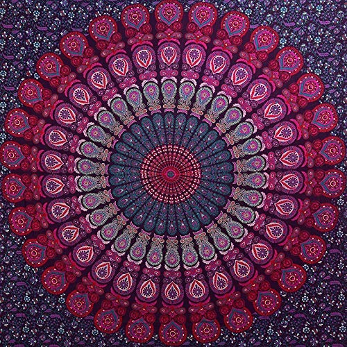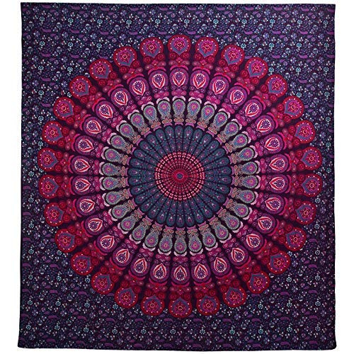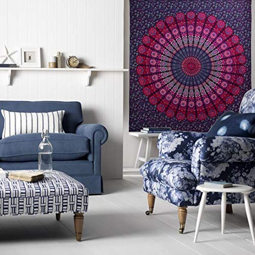 International Indian Hippie Bohemian Psychedelic Peacock Mandala Wall Hanging Bedding Tapestry (Purple-Blue Single(52x80Inches)(132x203Cms))