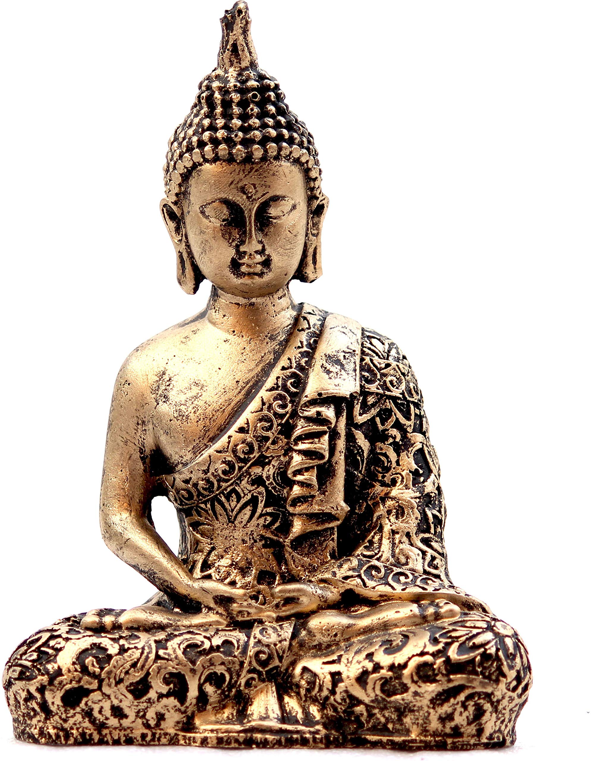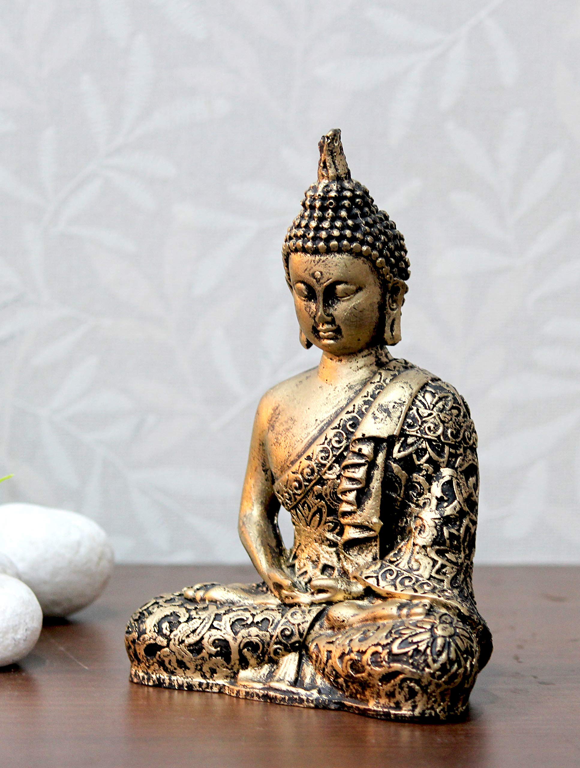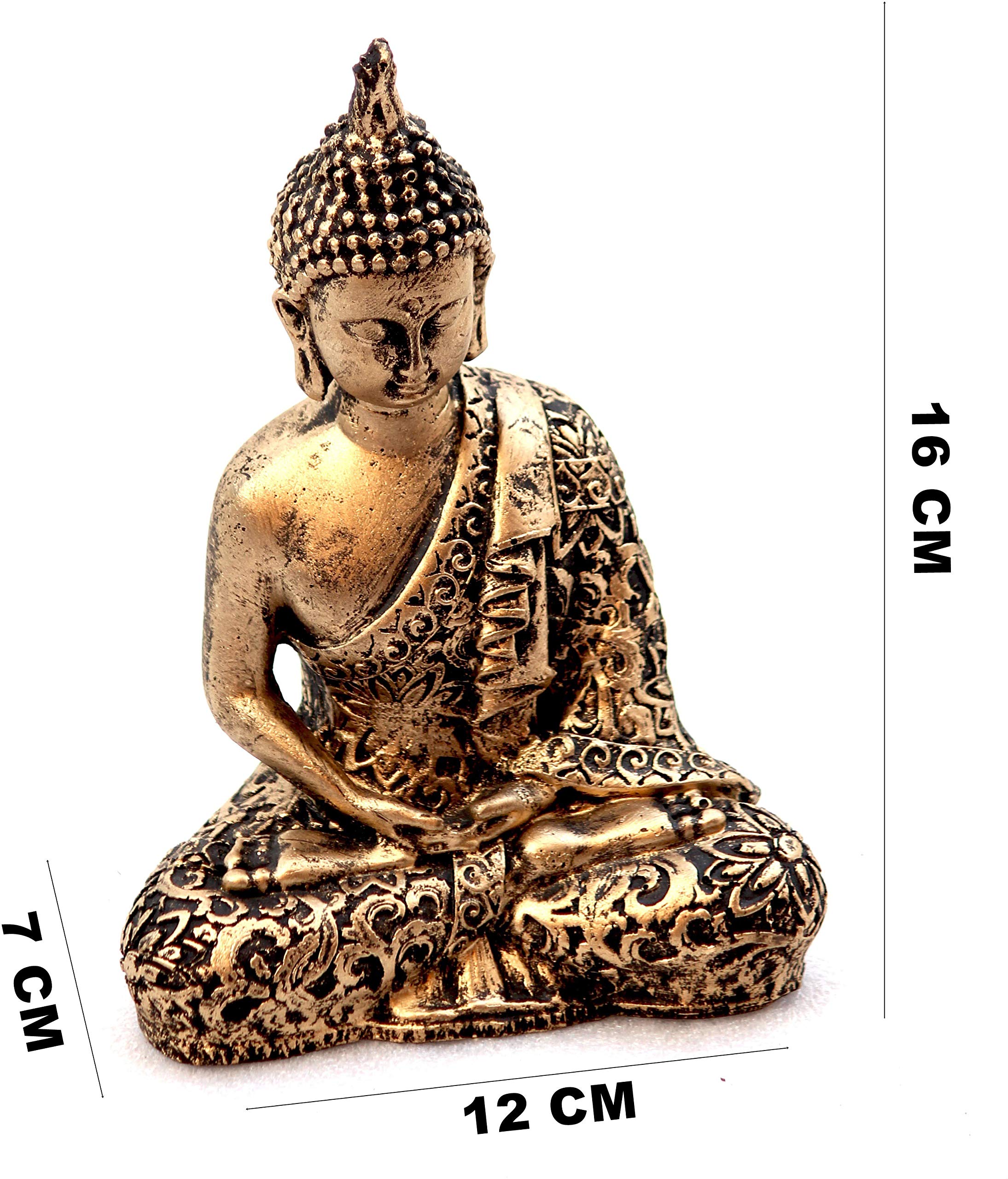 KU - BUDDHIST FIGURINES Handcrafted Samadhi Buddha Decorative Showpiece - 16 cm (Polyresin Gold)