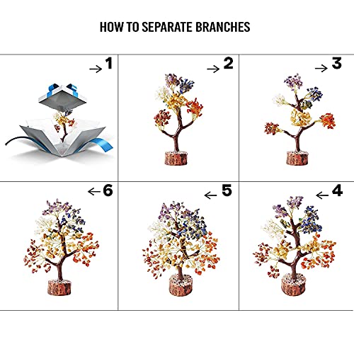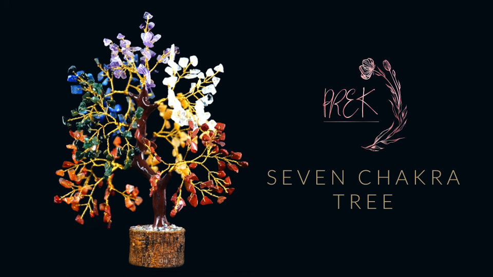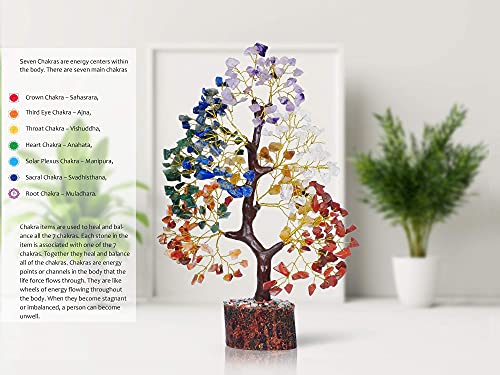 PREK Seven Chakra Crystal Gemstone Bonsai Money Tree with Golden Wire and 300 Beads Figurine Standard Size - Multicolour 1 Piece