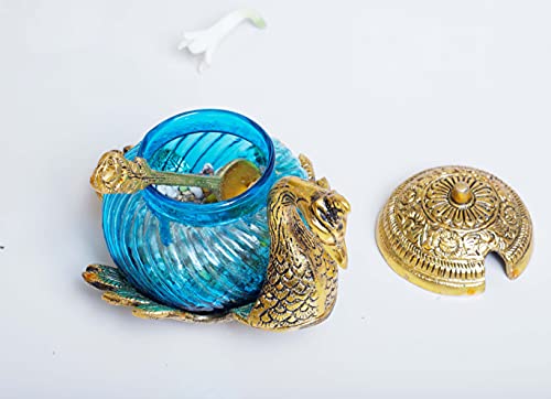 KridayKraft Metal Duck Shape Glass Bowl with Spoon for Saunf Supari & Dryfruit Tray Home Office Table Decor & Gift Item Decorative Showpiece for Decoration & Gifting Purpose