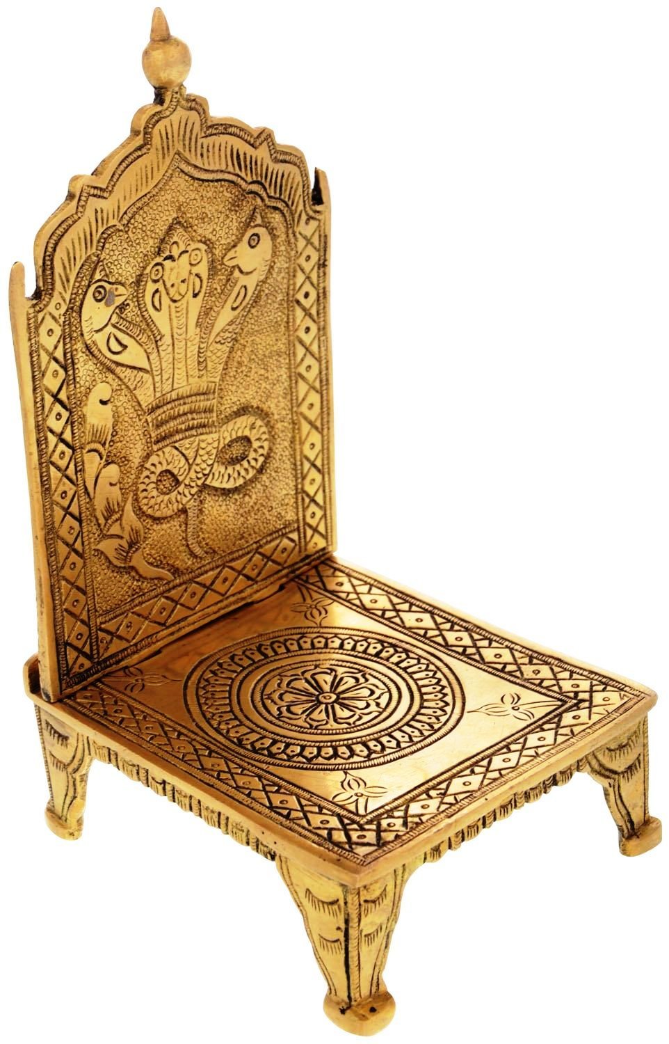 Purpledip Brass Singhasan Throne Chowki: God's Seating in Home Temple Golden (11232)