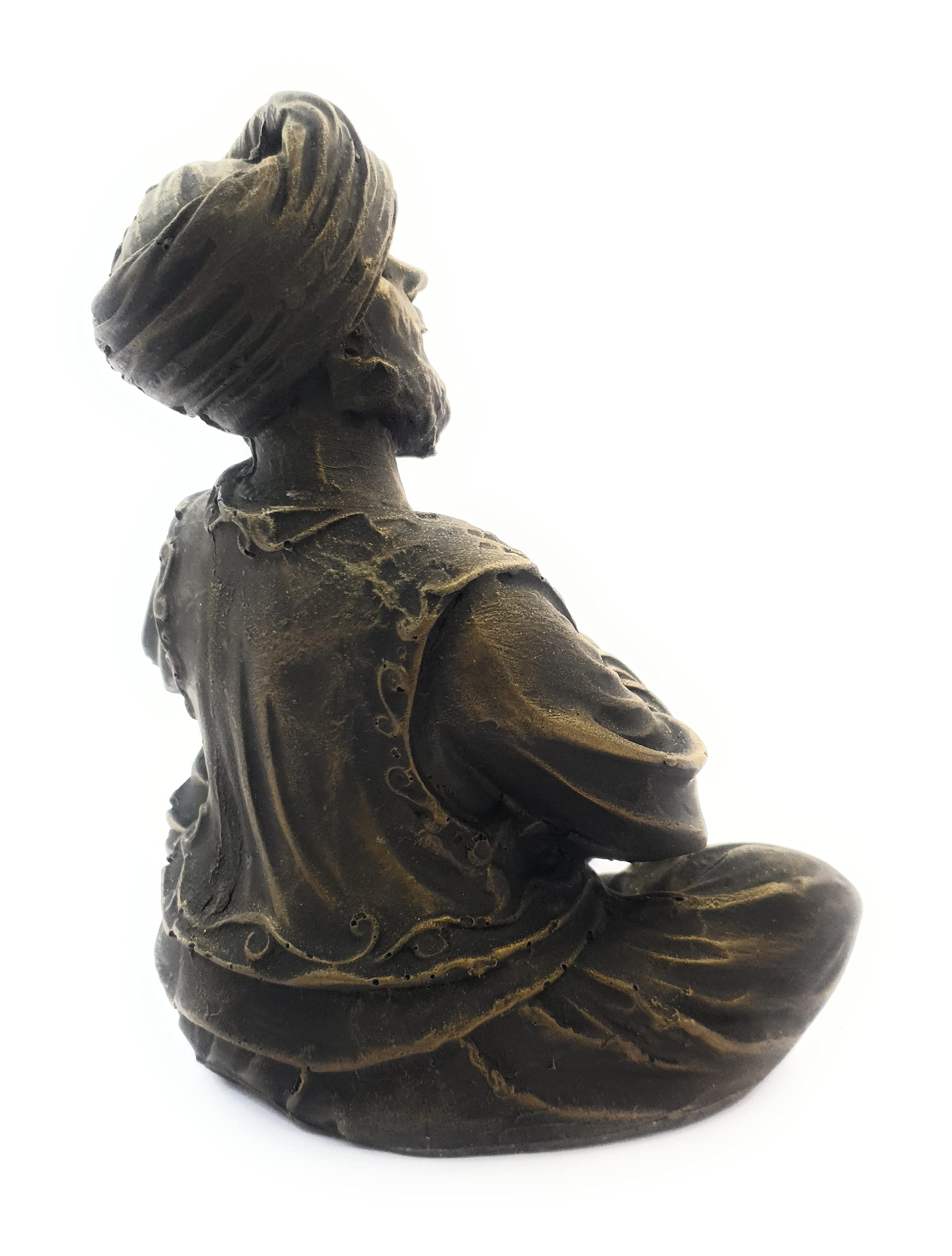 This comes in exclusive Blue Gift Boxed. High quality and authenticated. This Extremely Detailed and Well-Made statue is made with cold cast bronze The special production process of this piece originated from Great Britain & uses actual bronze powder mixed in the cold cast resin in order to ensures a richer more life-like presentation. See our entire selection of quality human statues in the 'Rajasthani ' section of ours. Standing human Sculpture Dimensions: H: 6" W: 4.5" Material: Cold Cast Bronze.