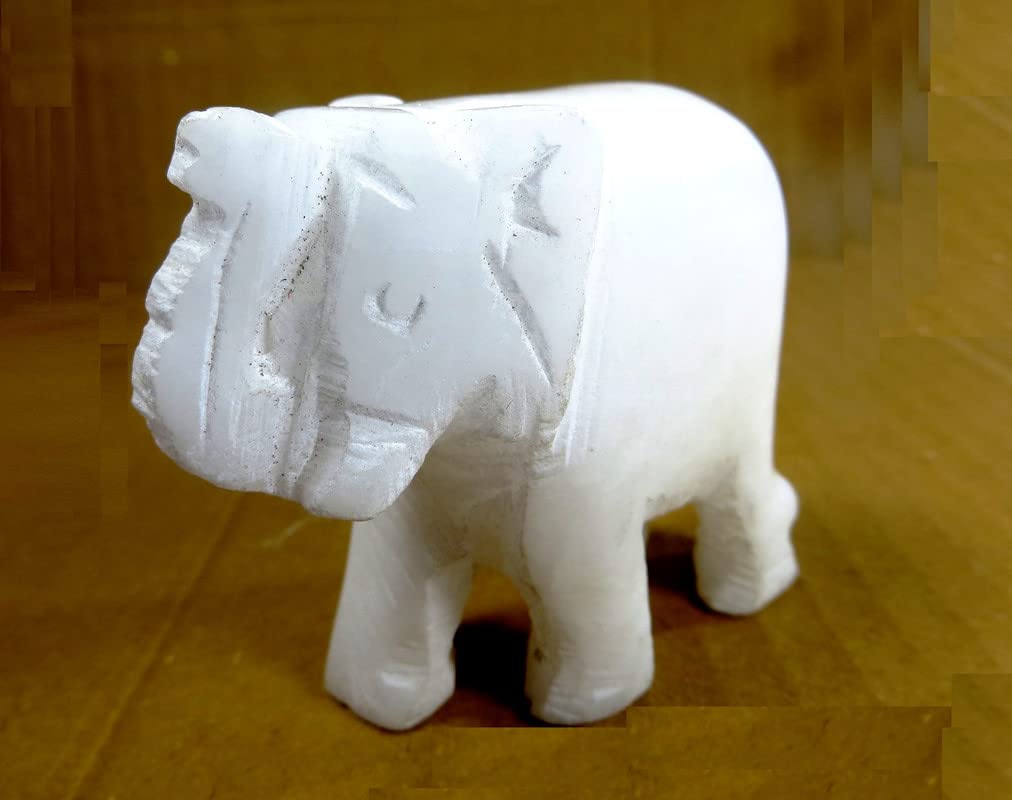 WOOD CARVING WORK Marble Elephant Pair: Marble Elephant/ Hathi/ Haathee/ nugu/ Yai Showpiece Figurine for Vastu/ Feng Shui Remedy Home Decor and Gifting (White; 2 Inches Height; Two Pieces: 180 Grams Weight)
