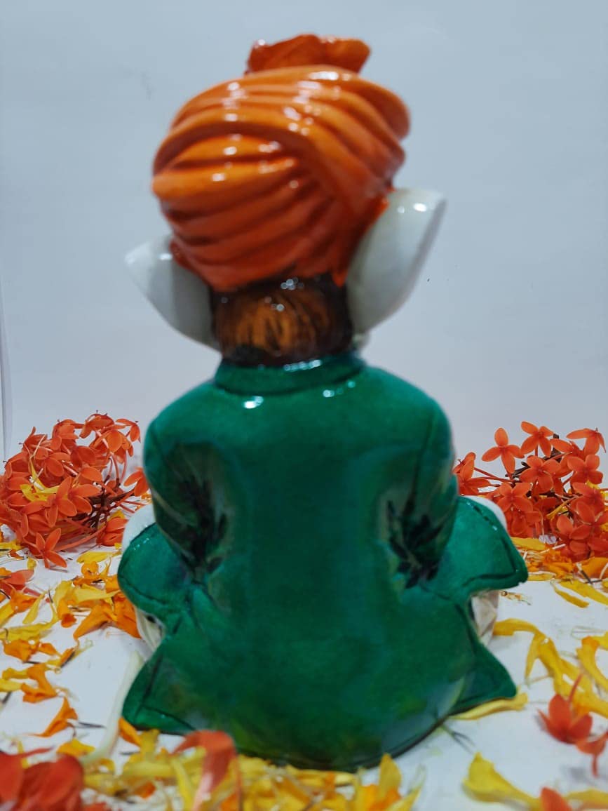 WOOD CRAFTS OF RAJASTHAN Ganesha dressing peta suit with musical instrumental idol for home office and cardashboard. Place this idol on table office desk guest room and for decorative showcase. Ideal gifting for house warming parents day birthday her/him anniversary her/him and gift for her/him. Gifting ganesha idol win everyones heart. washable idol.