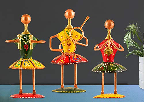 Make a decorative your home with this metal tribal lady playing different instrument showpiece table top sculpture while sticking to traditional style. An amusing way to spruce up the look of your room is by picking table decor from our wide collection. These table decor are carved with impressive designs and styles that have the ability to give your room a new appeal. In varying sizes colors and materials these decor items are a must buy.