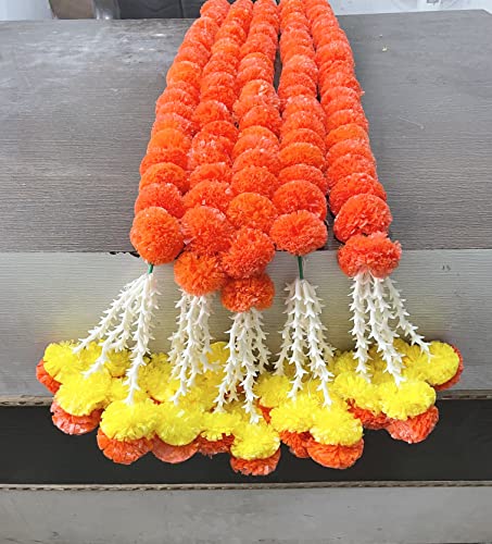 SPHINX Artificial Marigold Fluffy Flowers and Tuberose (rajnigandha) Clustered Garlands for Festive Pooja Wedding Housewarming Decorations- (Approx 5 ft - 5 Pieces, Dark Orange)