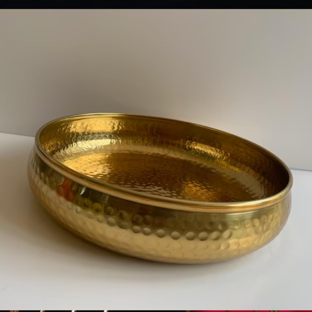 Urli a traditional vessel used in Hindu rituals and home decor holds immense cultural and spiritual significance. Its shallow basin design and intricate craftsmanship make it a captivating decorative accent that adds a touch of elegance and spirituality to any space. In Hindu Pooja rituals the Urli plays a prominent role as a vessel for various offerings and devotional practices. It is often used to hold water symbolizing purity and spiritual cleansing. Additionally the Urli's wide basin is perfect for creating stunning floral arrangements allowing you to showcase fresh flowers floating petals or fragrant garlands infusing your home or Pooja room with a vibrant and aromatic ambiance.
